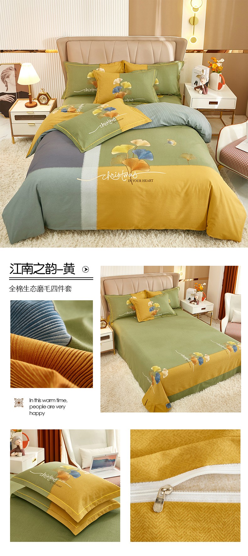 商品名称:雲归梦 2023年新款加厚全棉生态磨毛大版四件套 江南之韵-黄