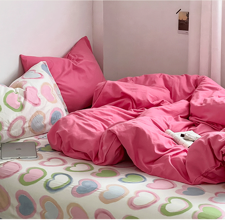 当前位置: 91家纺网 > 商品网购 > 床品套件 > 四件套 > 水洗棉四件套 > 直播热款A类水洗棉双层纱四件套纯色小碎花被套床笠三件套 树莓红+小幸运