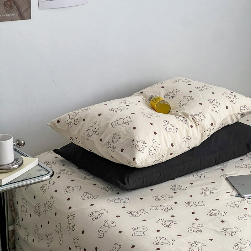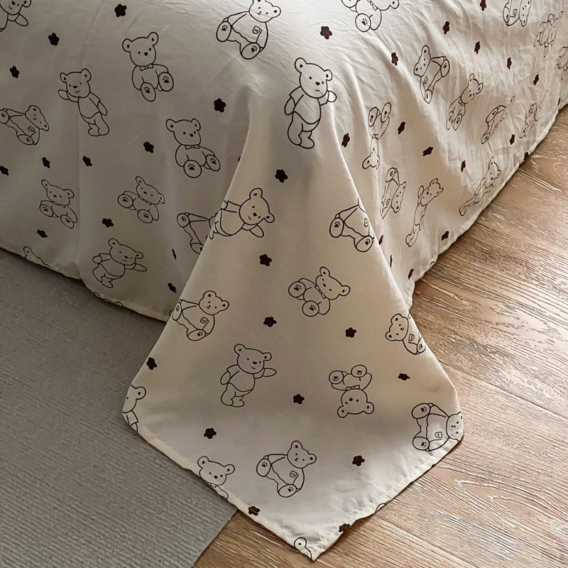 直播热款水洗棉双层纱四件套碎花简约风床单单品单件 闪耀黑+小熊院长