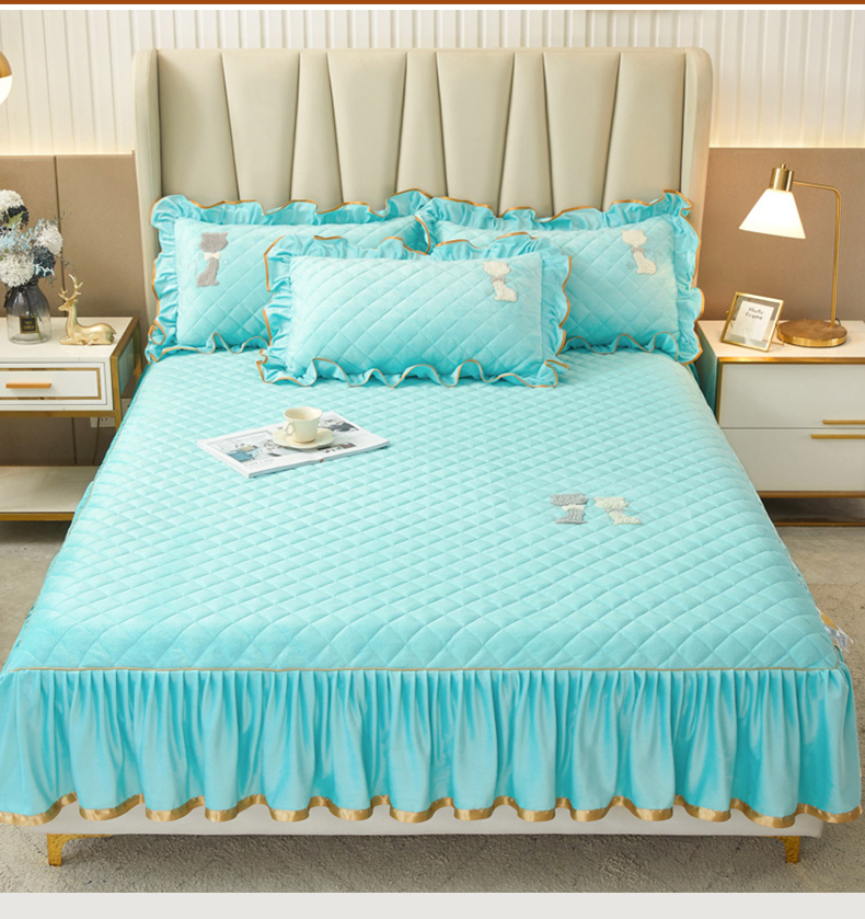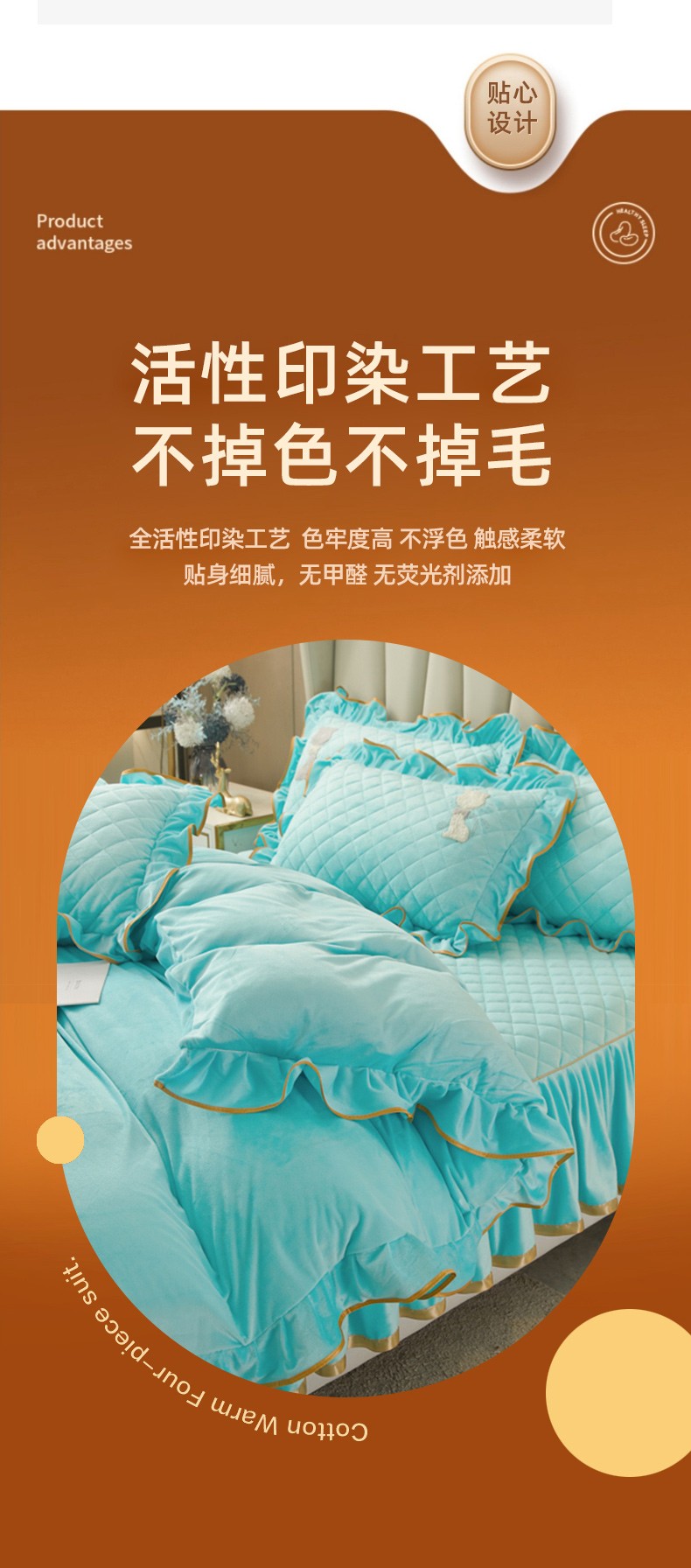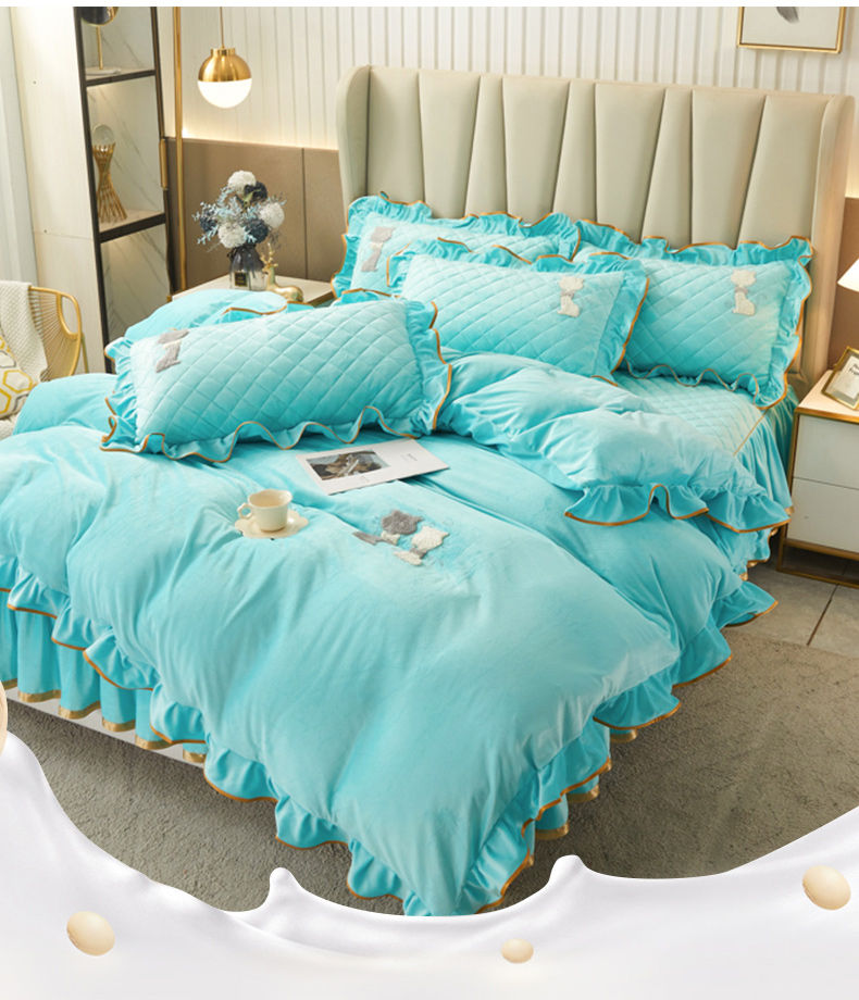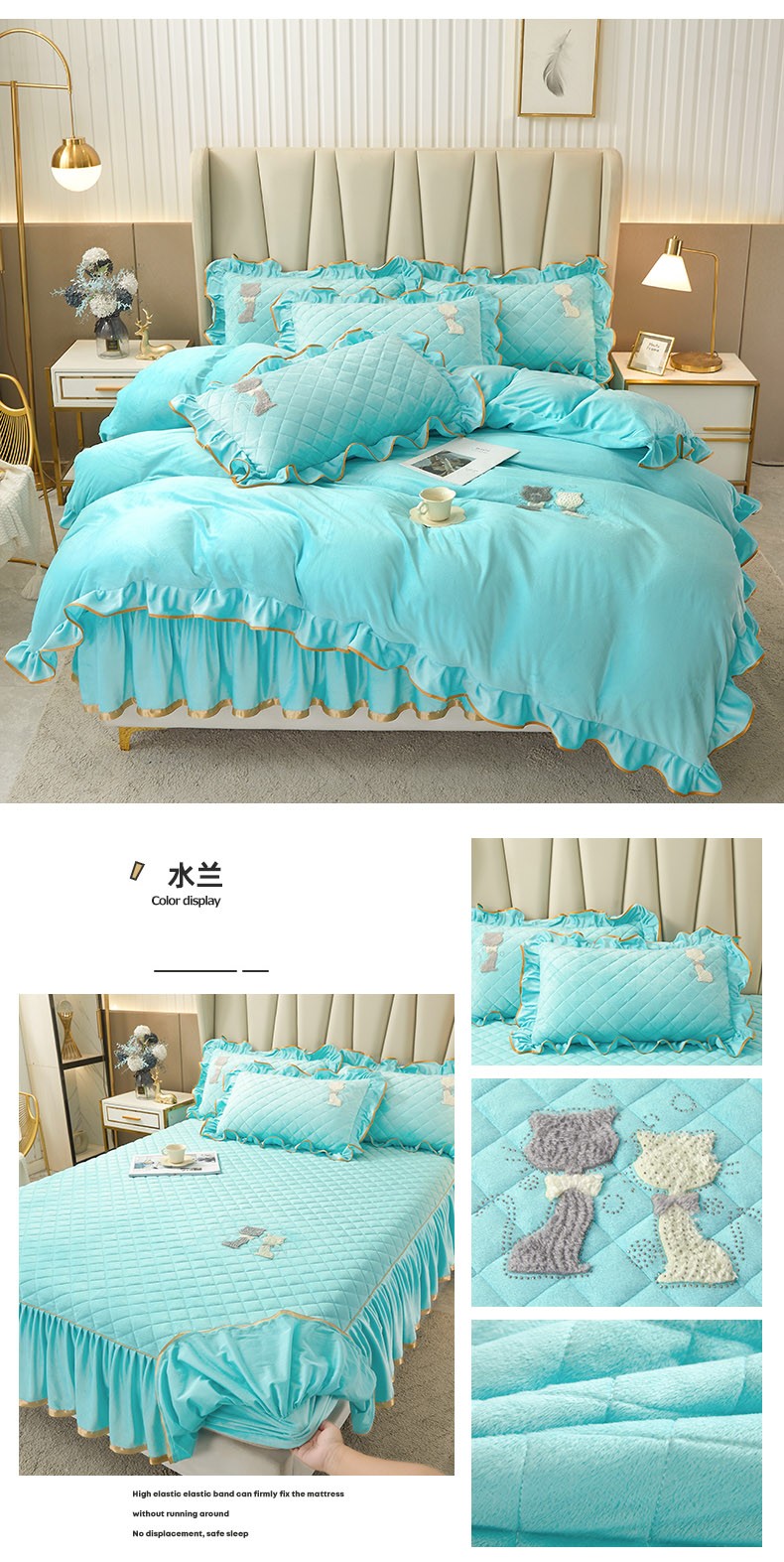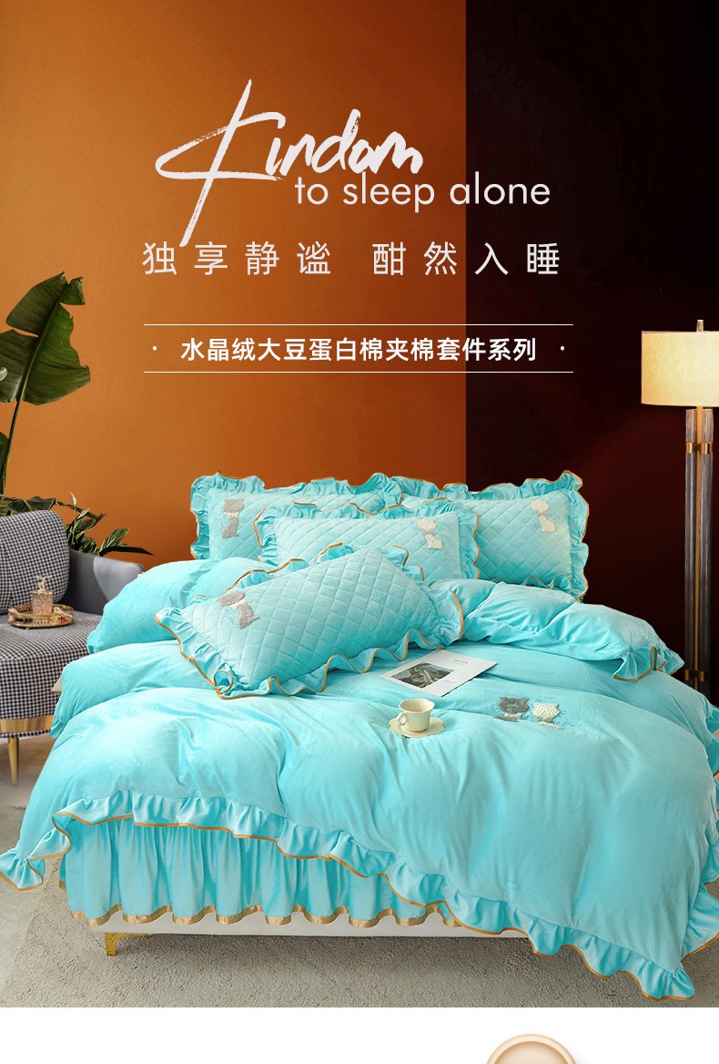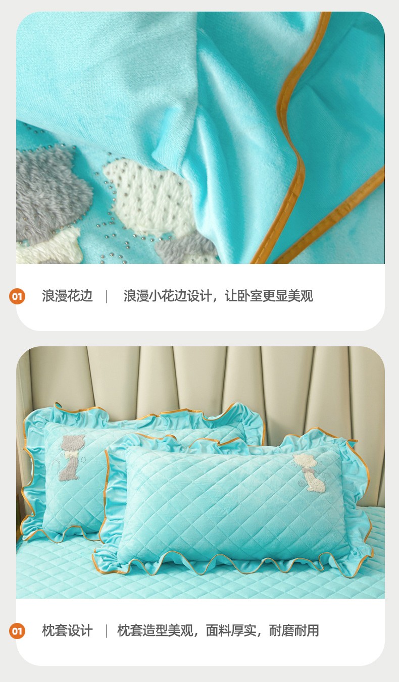 当前位置: 91家纺网 > 商品网购 > 床品套件 > 四件套 > 水晶绒四件套 > 恋尚 2023新款水晶绒夹棉床裙床笠四件套-KT猫系列 水兰