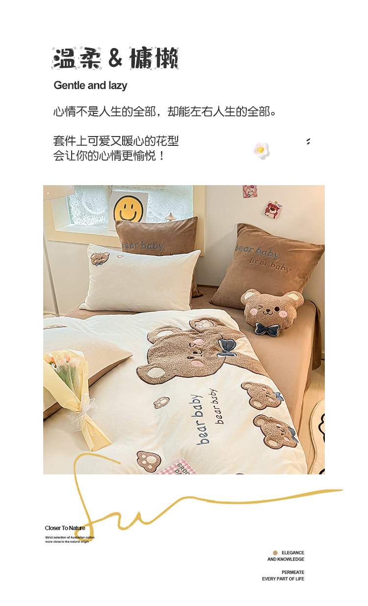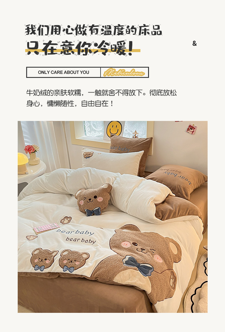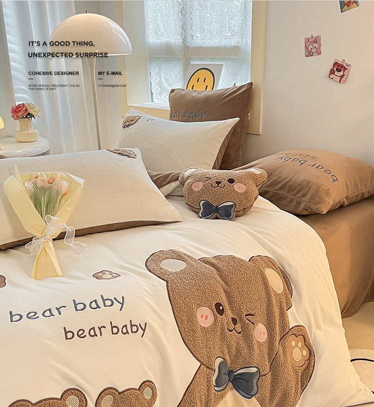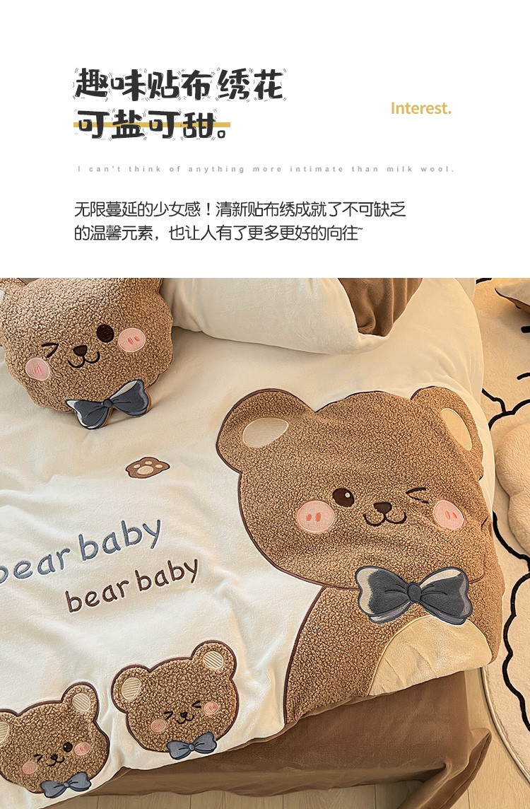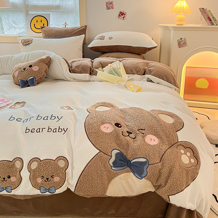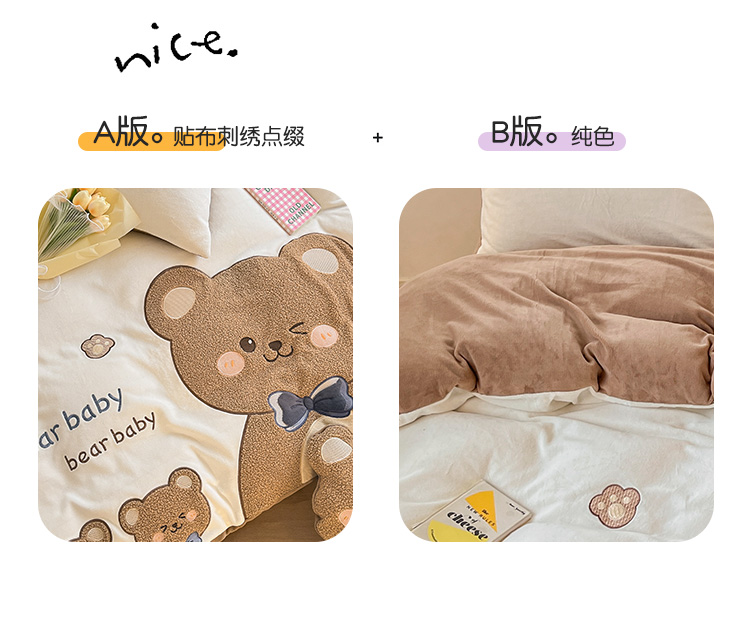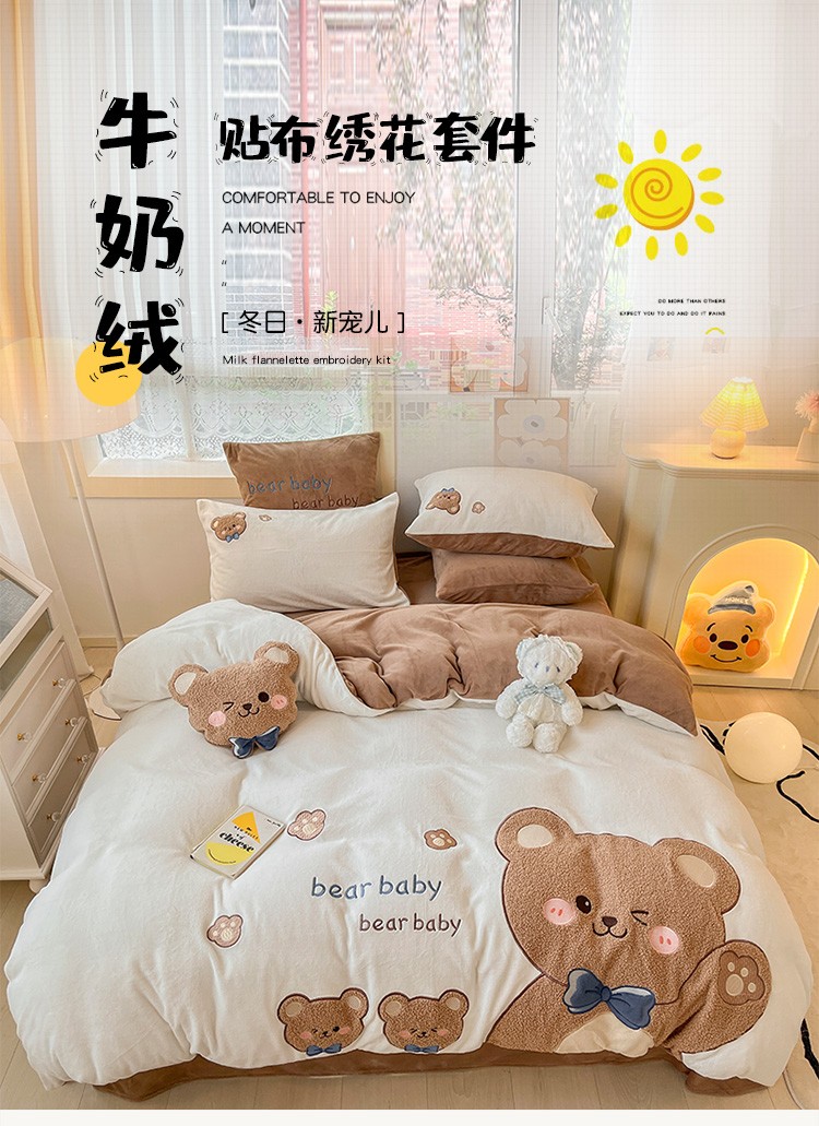 当前位置: 91家纺网 > 商品网购 > 床品套件 > 四件套 > 牛奶绒四件套 > 230克加厚牛奶绒贴布绣花四件套小清新绒四件套儿童卡通三件套保暖套件