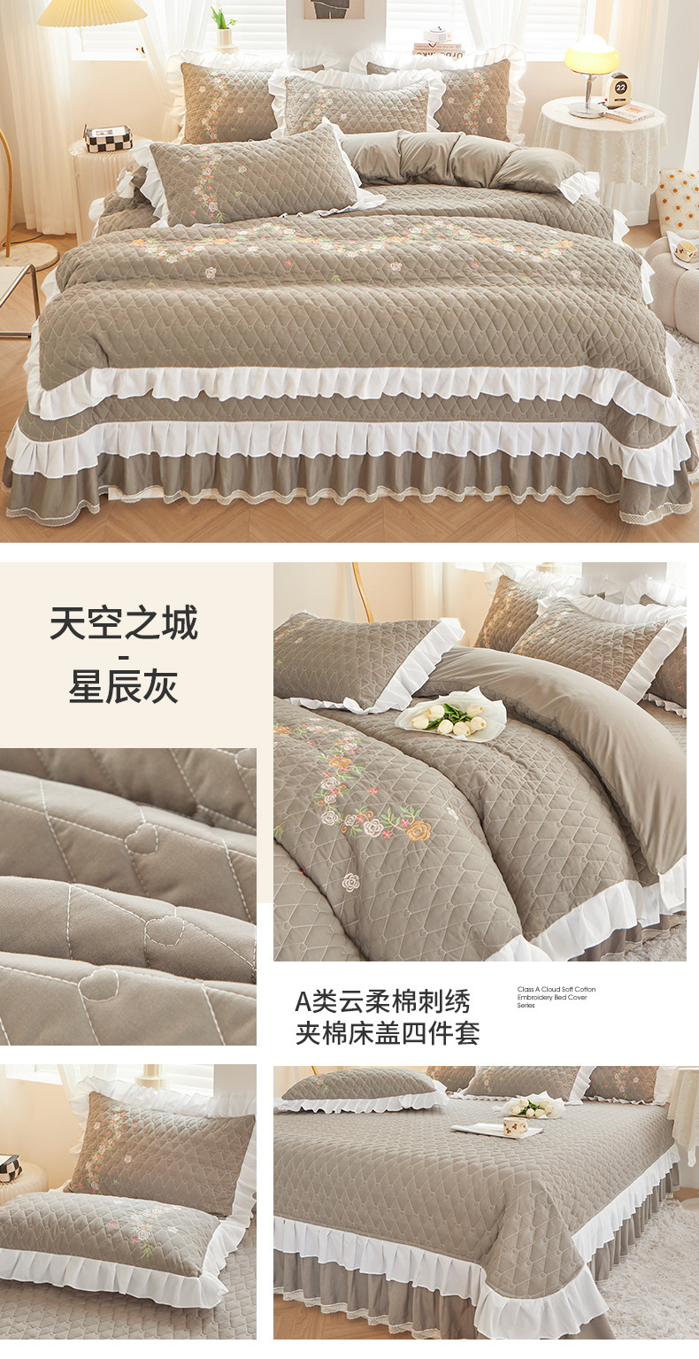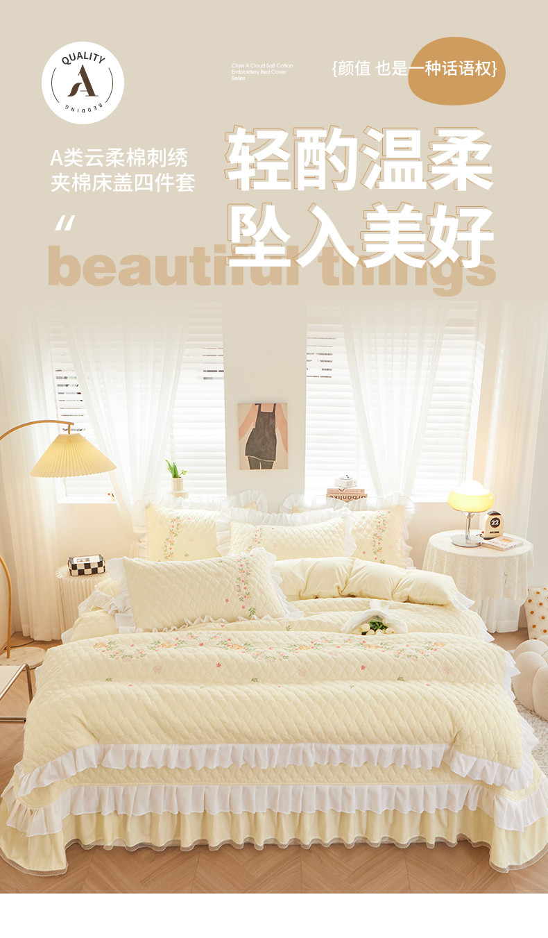 (总)宜凡 2023新款A类云柔棉床盖夹棉四件套