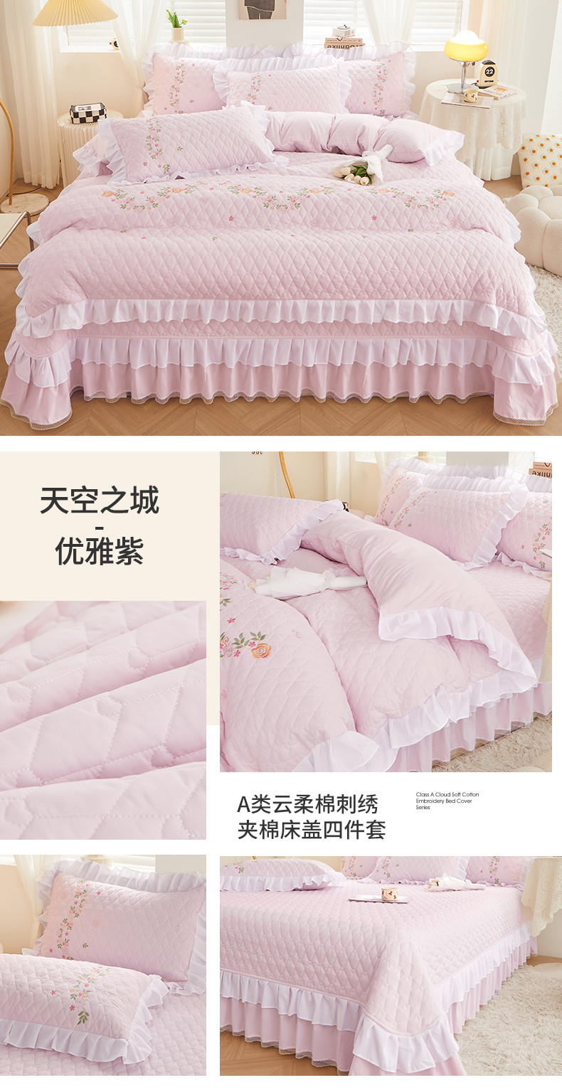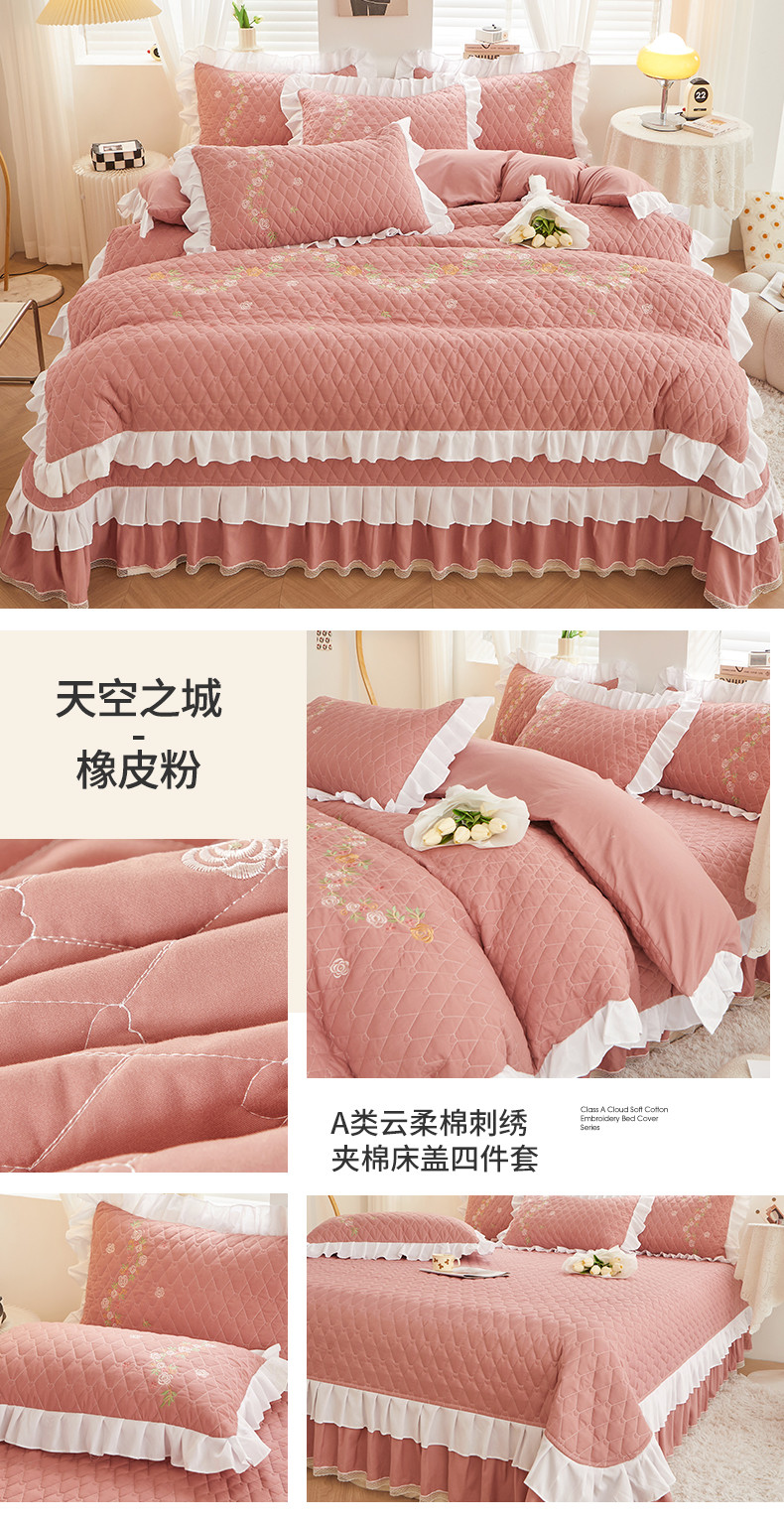 (总)宜凡家纺 2025新款兔绒提花牛奶绒夹棉床裙四件套,爱心 少女粉,爱心 粉紫,爱心 驼色,蝶舞 大红,蝶舞 米色,蝶舞 浅紫,蝶舞 玉色,简爱 苍青,简爱 豆沙紫,简爱 玉色,樱桃 苍青,樱桃 豆沙紫,樱桃 奶油白