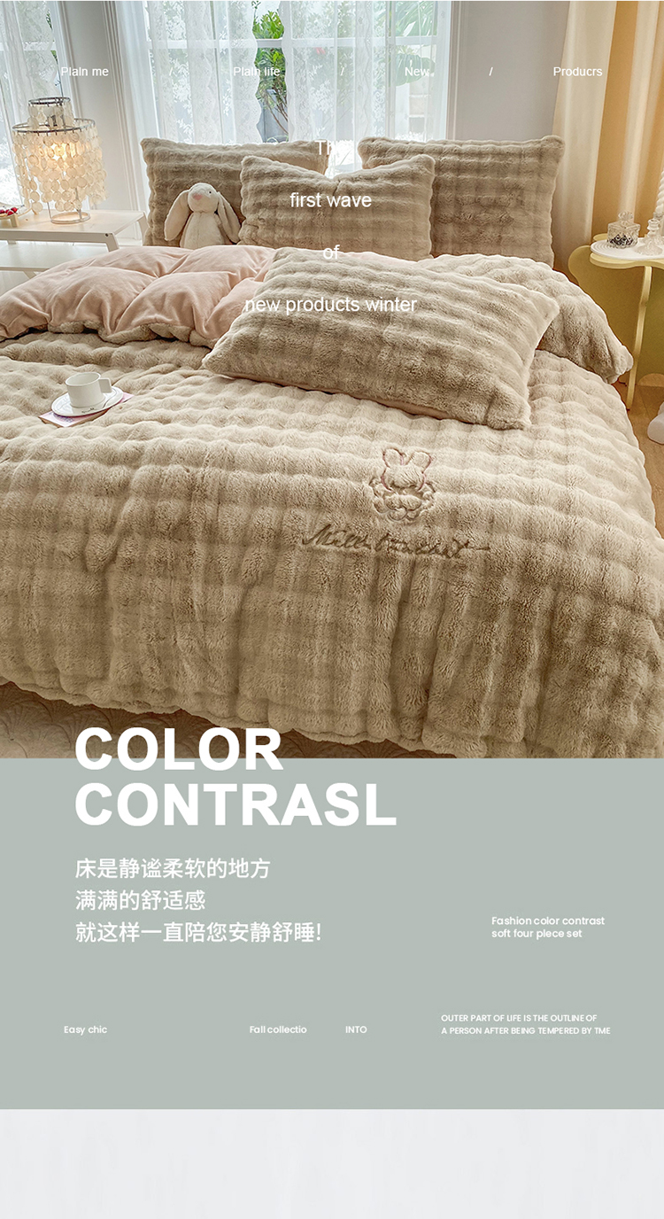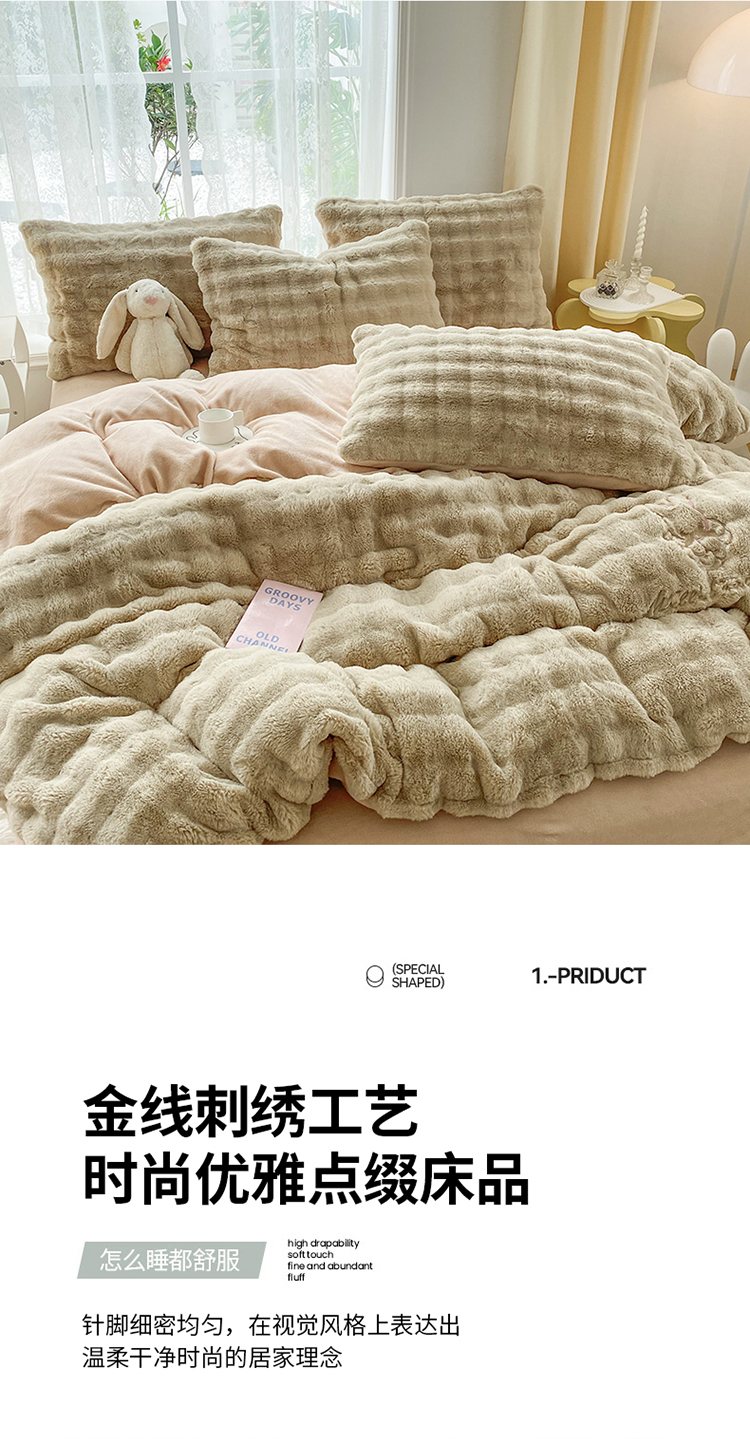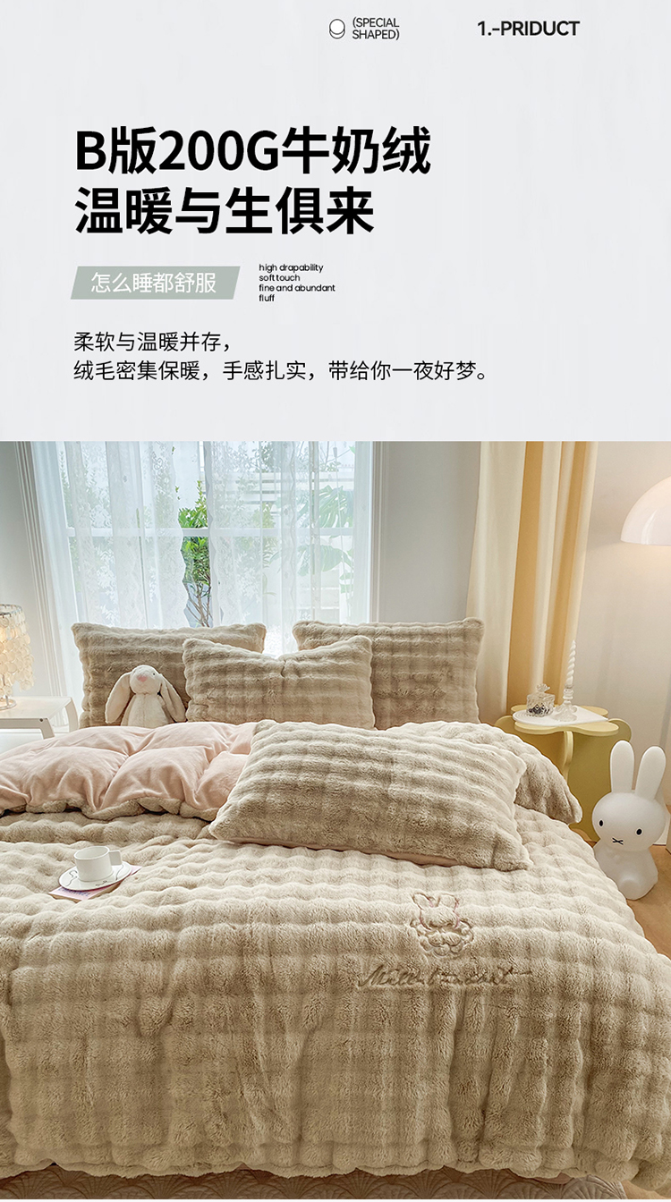 商品名称:2025新款小米兔泡泡兔绒保暖四件套 米兔卡其