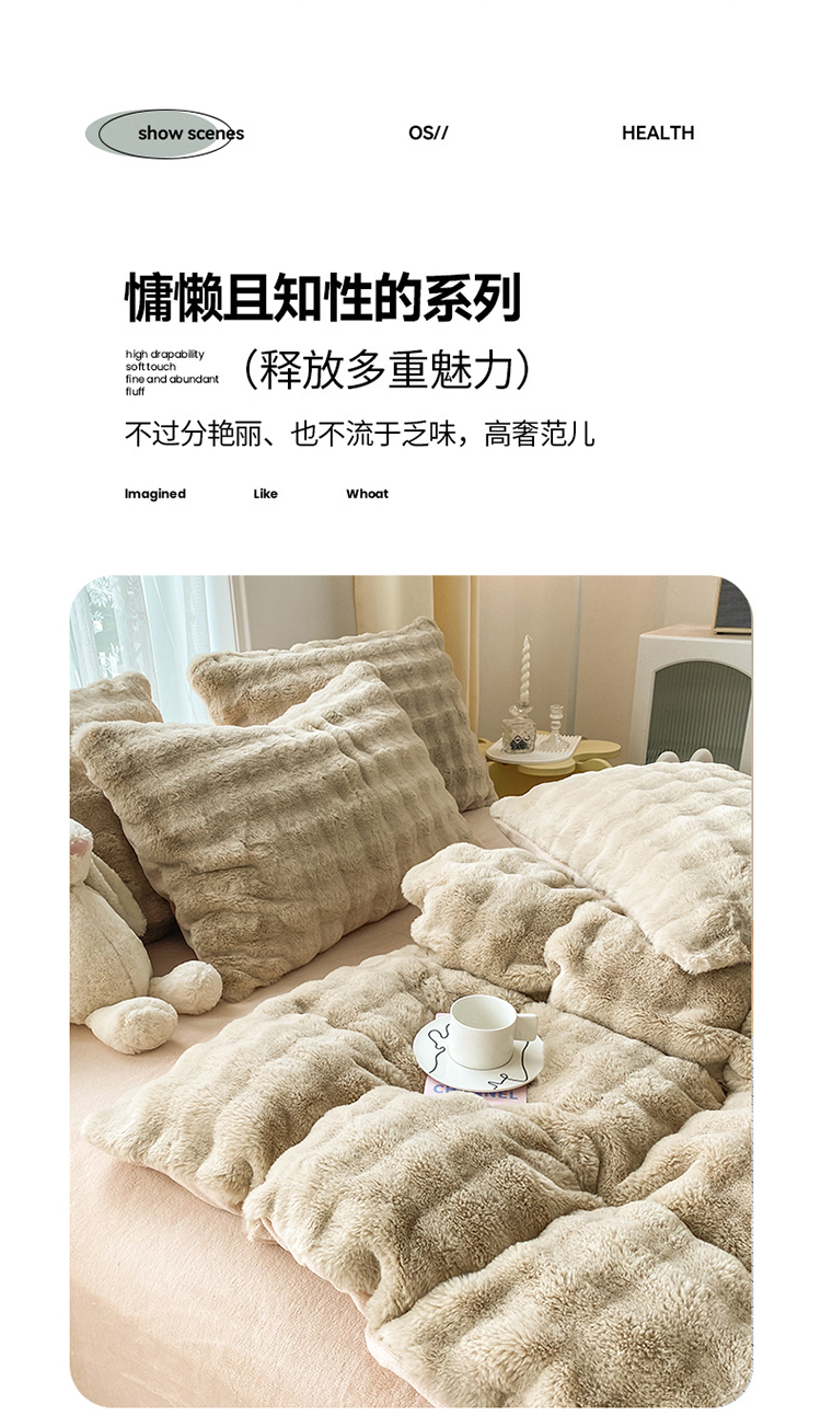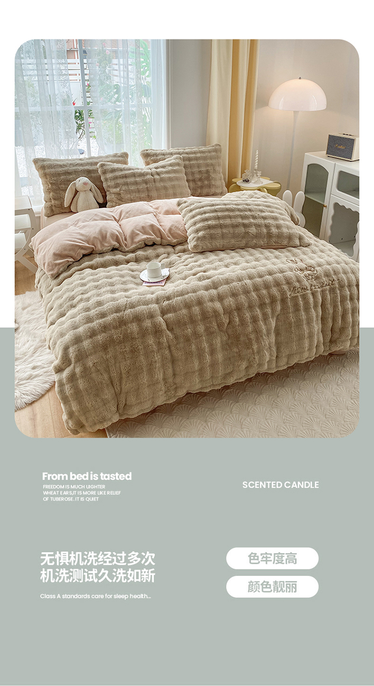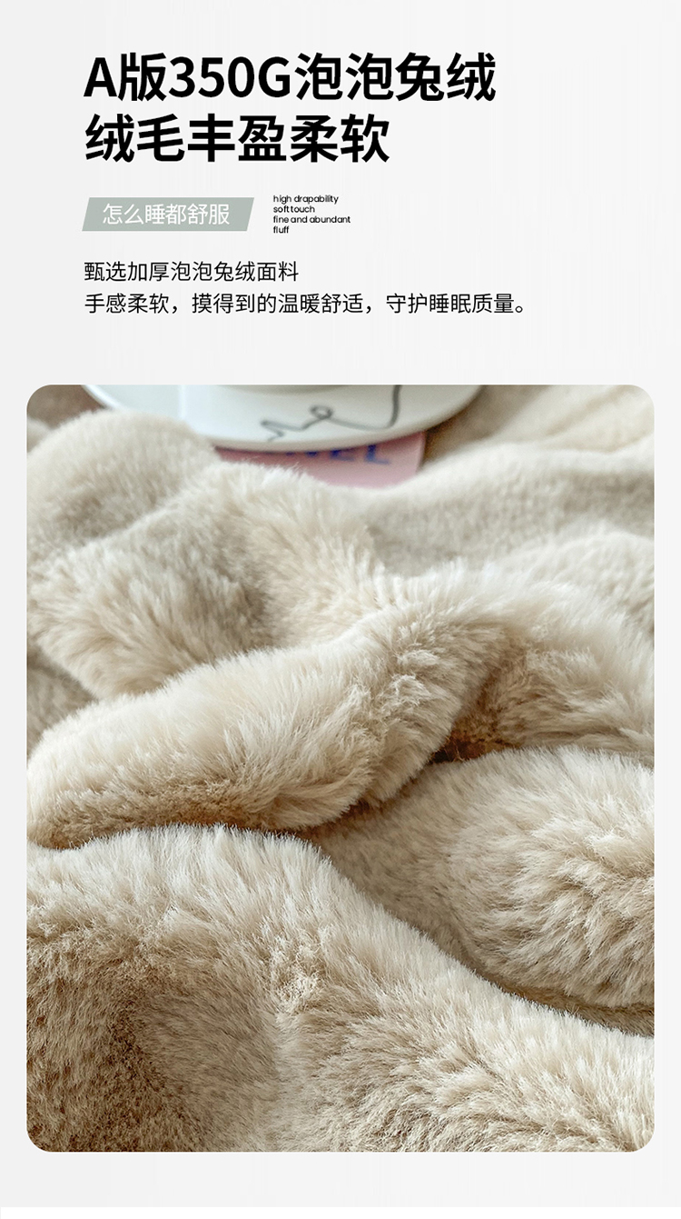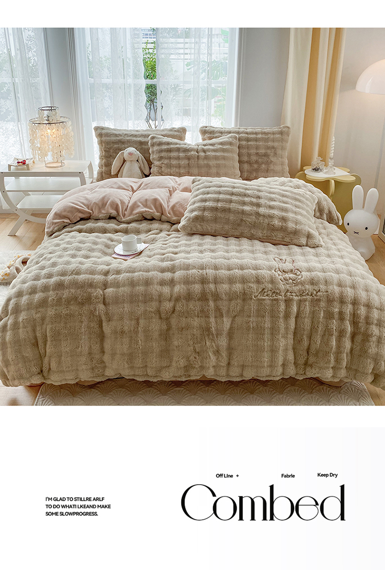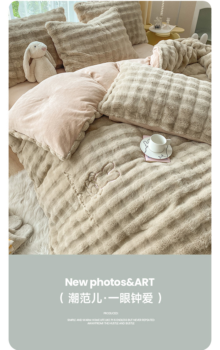 (总)潮邦创意家居 2025新款小米兔泡泡兔绒保暖四件套,米兔白,米兔豆沙,米兔灰,米兔卡其,米兔绿