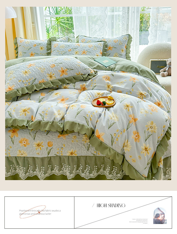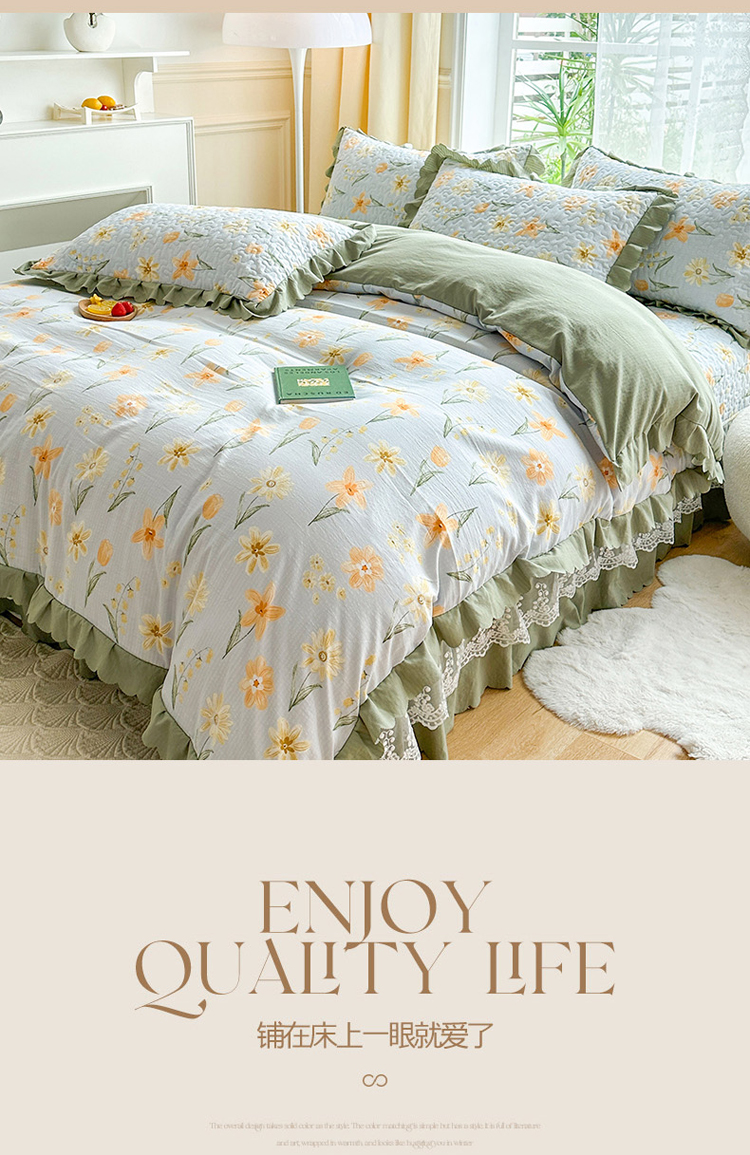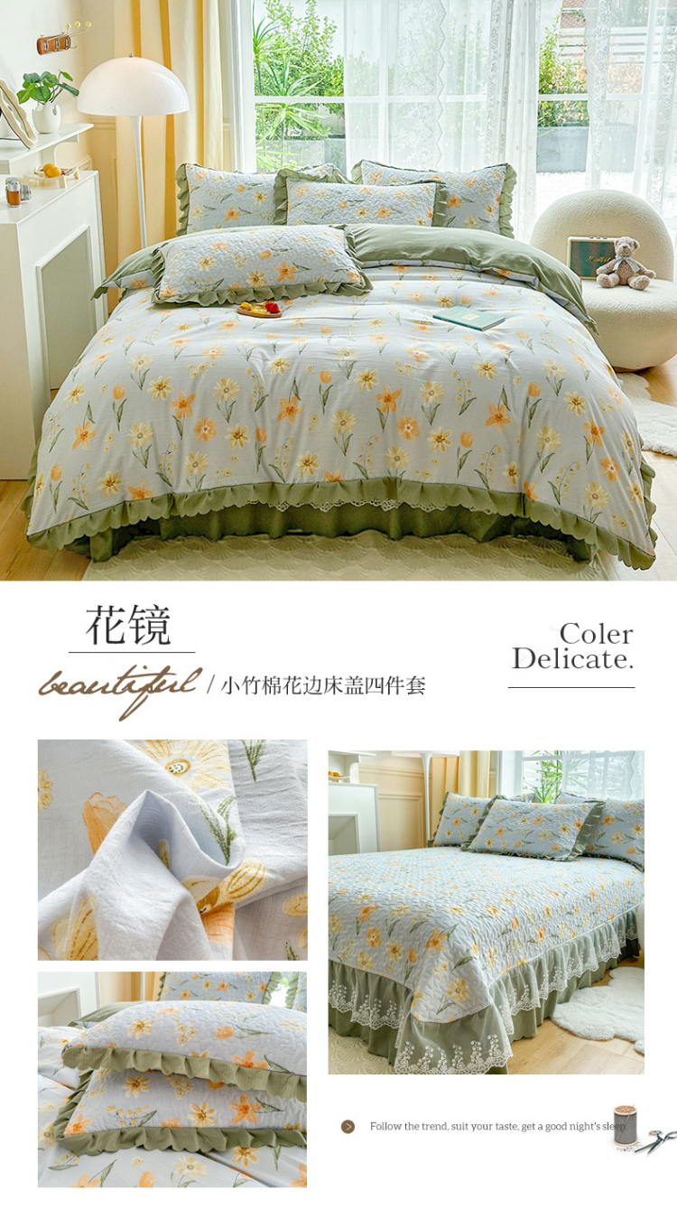 艺慕家纺 2025新款水洗棉麻双层纱夏被床盖四件套 幽梦青萝,幽梦青萝