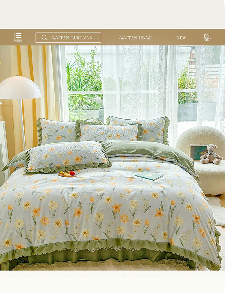 (总)艺慕家纺 2025新款水洗棉麻双层纱床盖四件套,太阳花绿,心动绿,春意,枫叶,粉色玫瑰,红豆,花丛兔,萌小兔,郁金香紫,青花瓷,夕颜,屋顶花园,夏日仙草