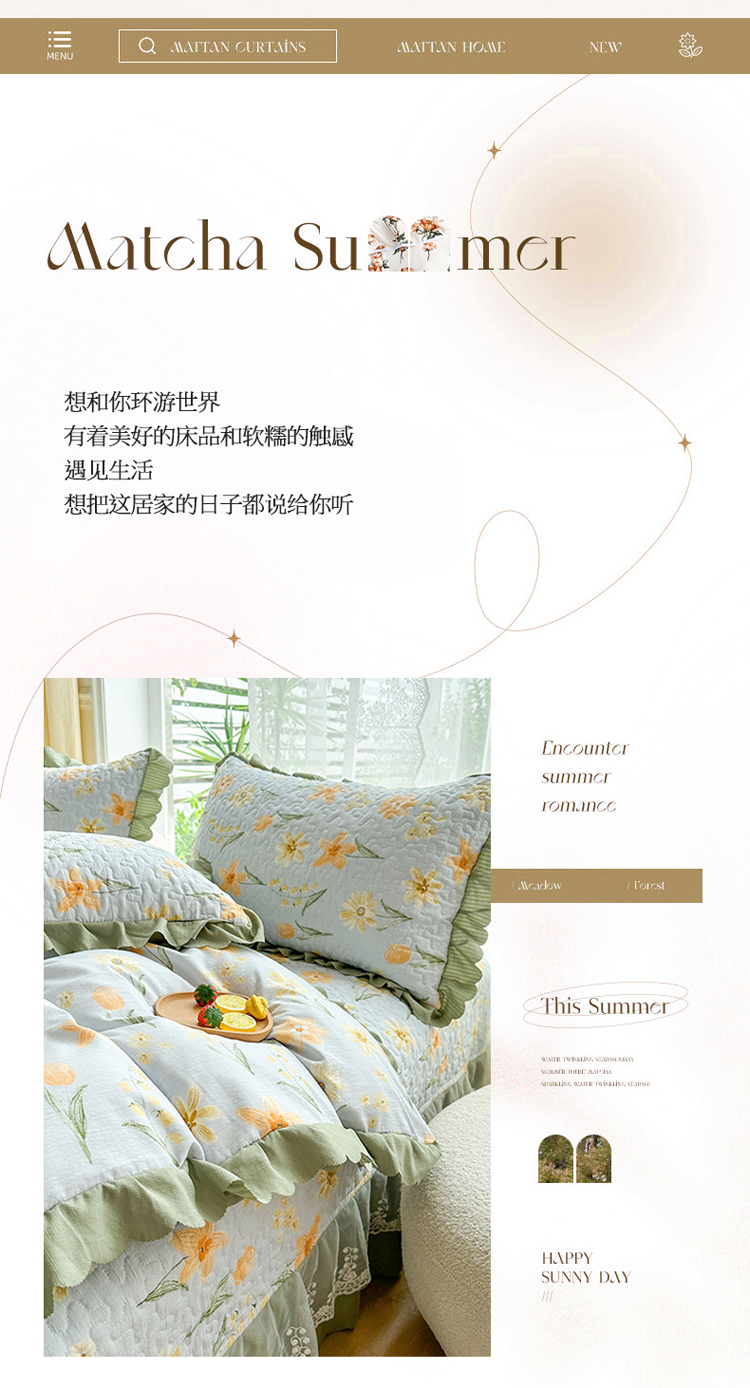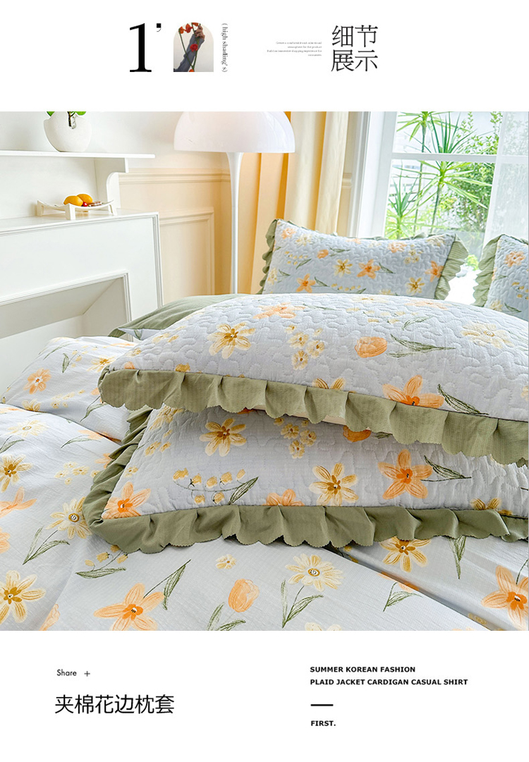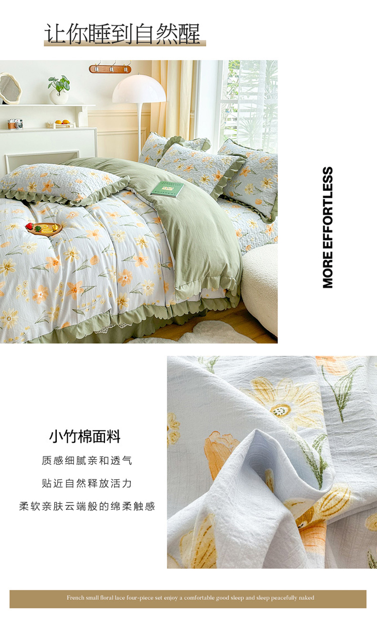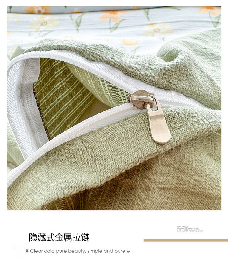 (总)艺慕家纺 2025新款水洗棉麻双层纱夏被床盖四件套,夏日仙草,夕颜,太阳花 绿,屋顶花园,心动 绿,春意,枫叶,粉色玫瑰,红豆,花丛兔,萌小兔,郁金香紫,青花瓷,绿藤花语,幽梦青萝,紫菱花园