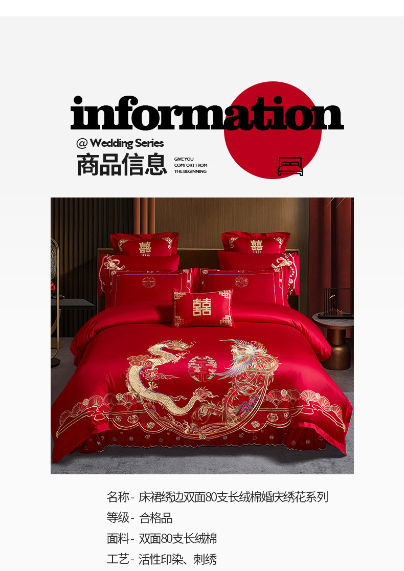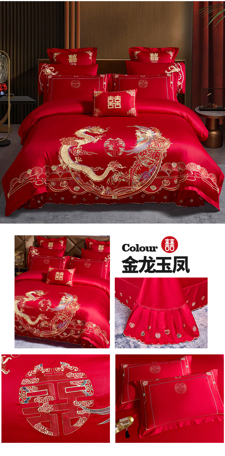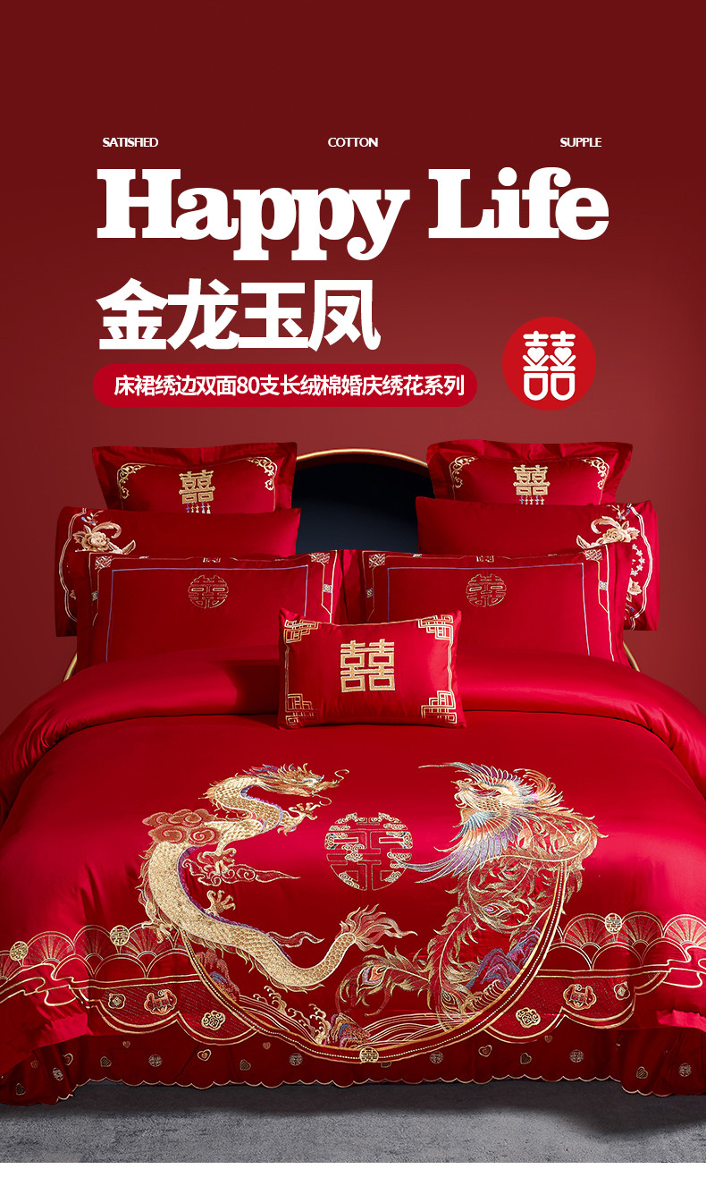 当前位置: 91家纺网 > 商品网购 > 床品套件 > 四件套 > 婚庆四件套 > 千禧 2023新款床裙绣边双面长绒棉婚庆绣花系列四件套 金龙玉凤