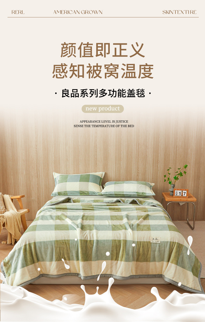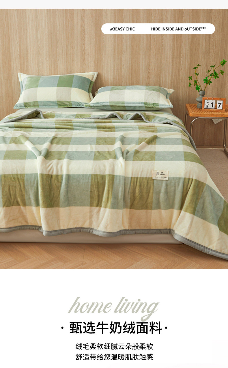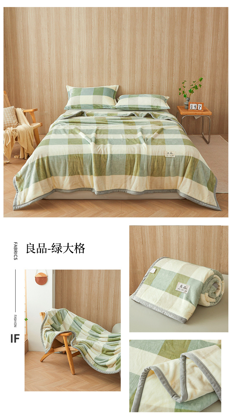 当前位置: 91家纺网 > 商品网购 > 毛毯休闲毯绒毯 > 毛毯 > 雅萱家纺 2024新款良品系列牛奶绒多功能毛毯盖毯 良品-绿大格