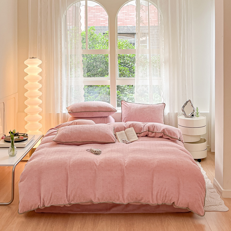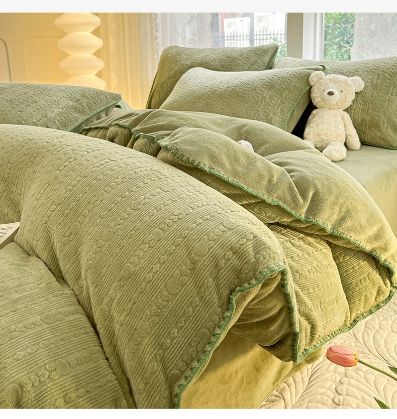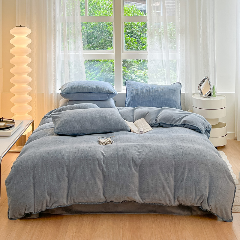 (总)金爱家 2023新款半消光牛奶绒立体雕花牛奶绒四件套