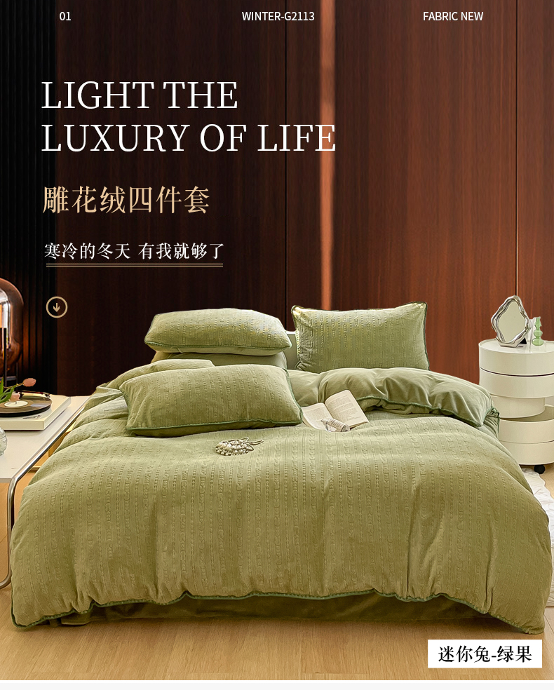 商品名称:(总)金爱家 2023新款半消光牛奶绒立体雕花牛奶绒四件套