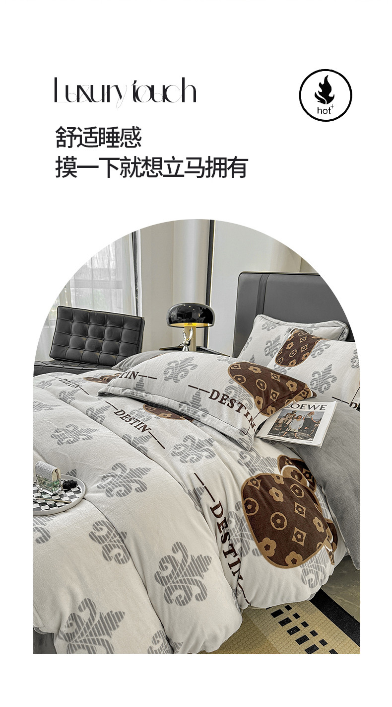 商品名称:耀达 2024新款轻奢加厚牛奶绒四件套 潮玩熊