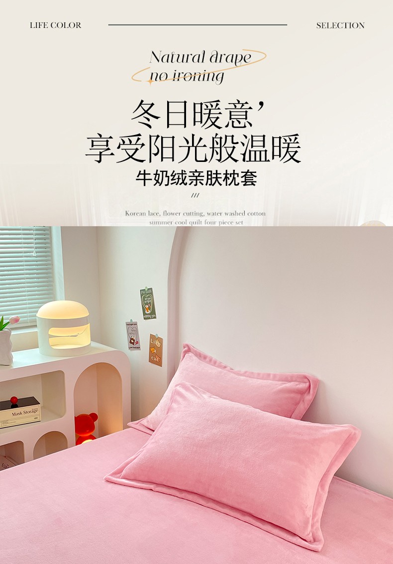 商品名称:梦舒羽 2025新款冬季牛奶绒枕套加厚加绒亲肤柔软枕芯套 樱花粉