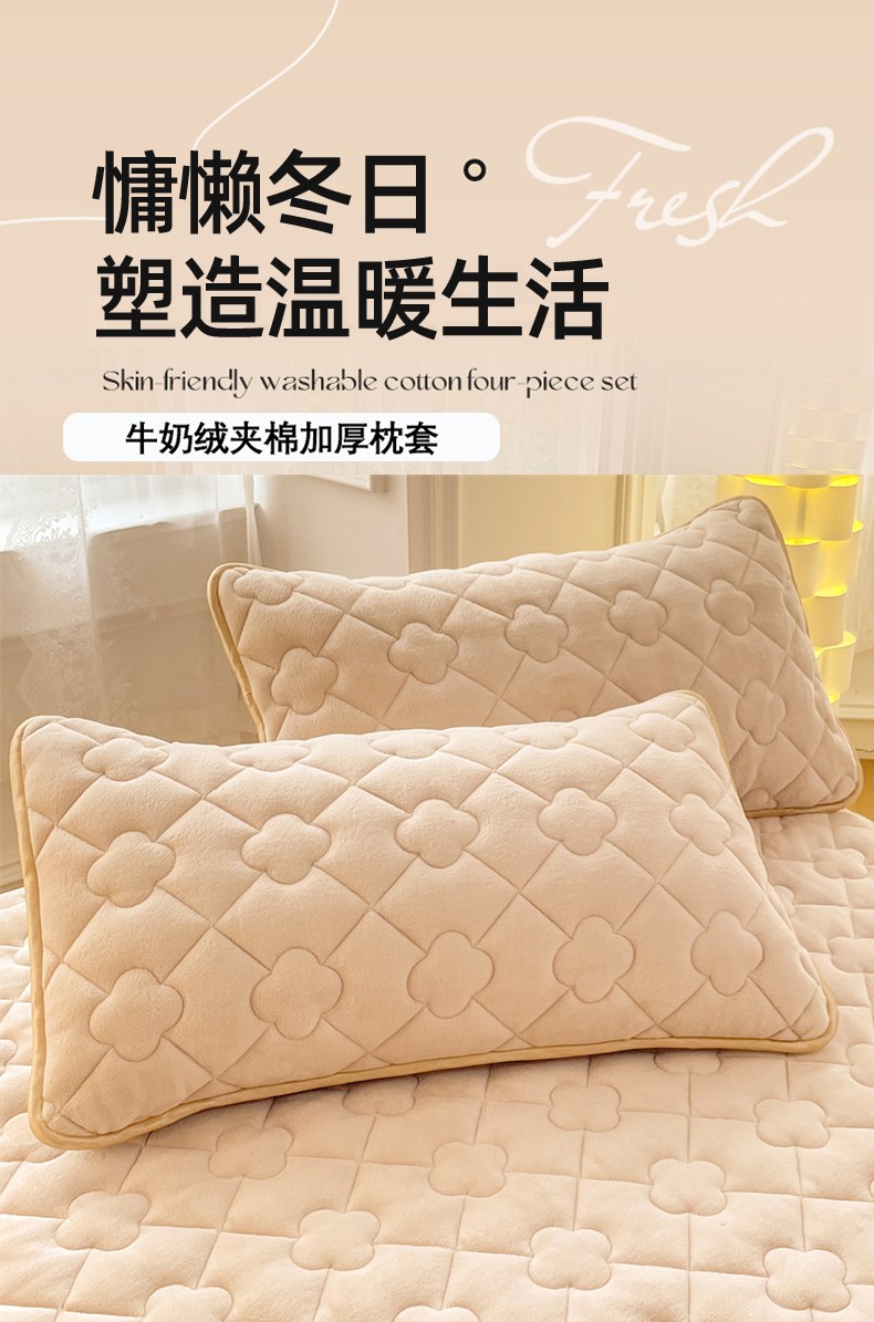 商品名称:梦舒羽 2025新款冬季牛奶绒夹棉加厚加绒亲肤柔软枕芯套 米黄
