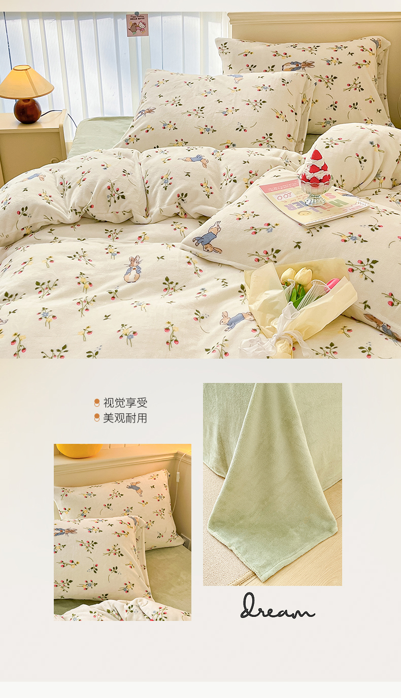 商品名称:金爱家 2023新款ins小清新韩系卡通少女心奶油兔子加厚牛奶绒系列四件套 绒-兔先生