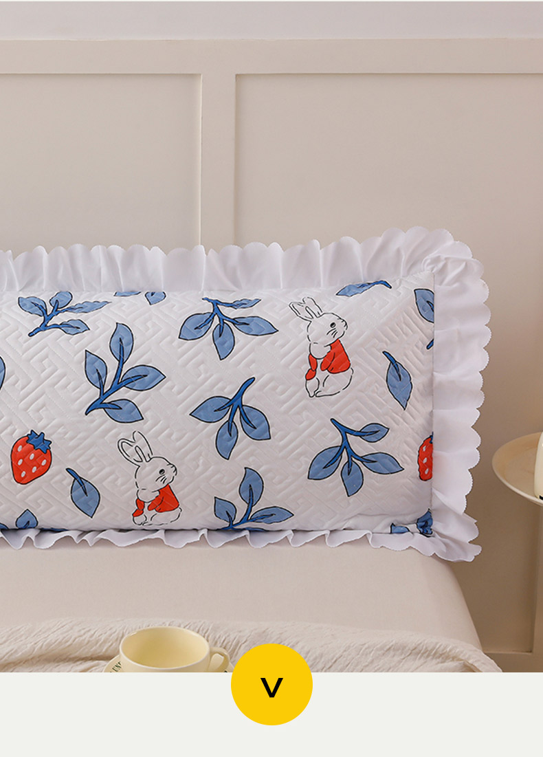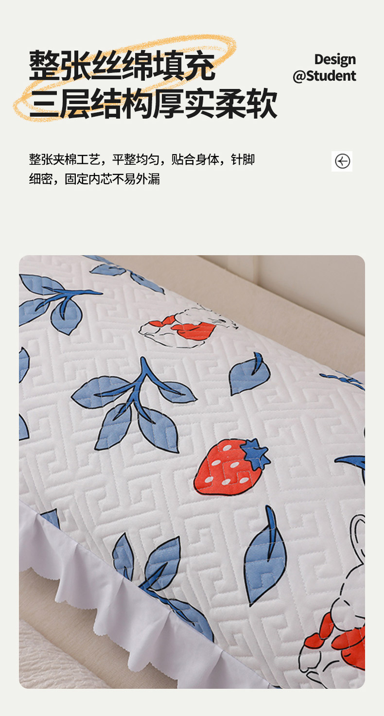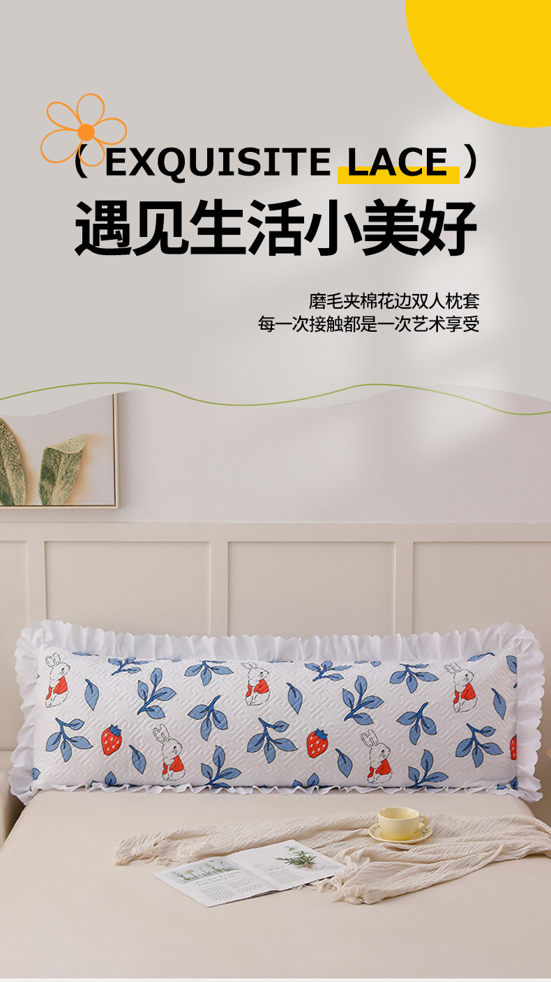商品名称:艾兜坊 2023新款磨毛夹棉花边双人枕套 草莓兔