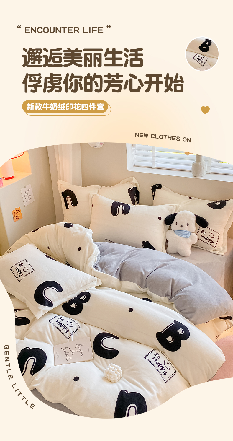 当前位置: 91家纺网 > 商品网购 > 床品套件 > 四件套 > 牛奶绒四件套 > 梦之岛 2023新款牛奶绒加厚小清新印花保暖四件套 格调