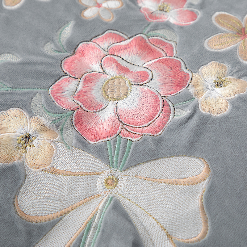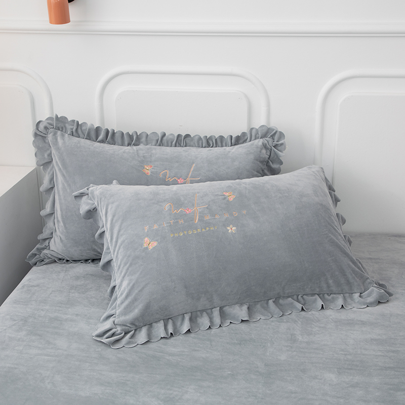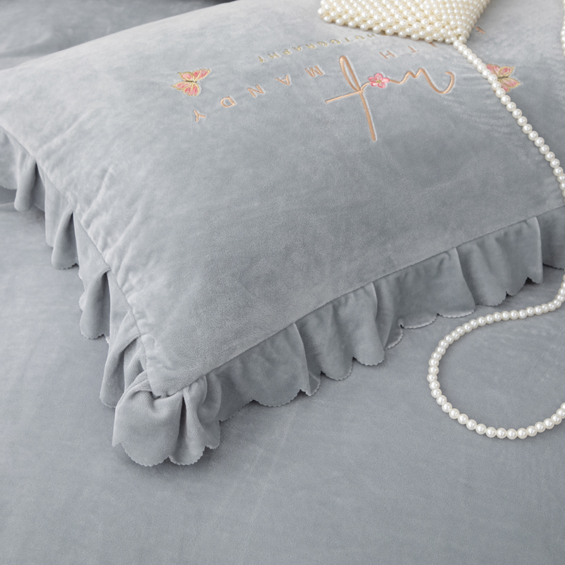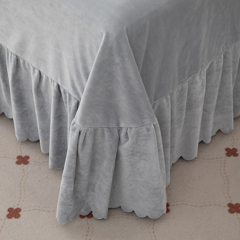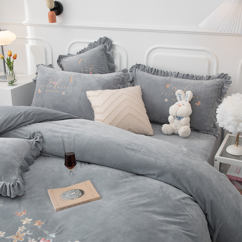 床品套件 > 优姿家纺 2024新品8.5斤德芙绒韩版床裙绣花保暖四件套 今生有约绅士灰