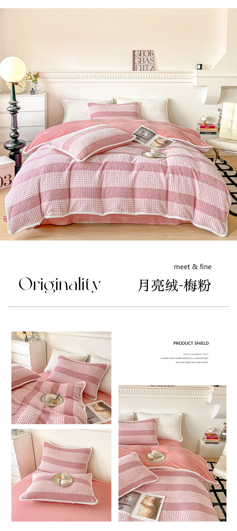 商品名称:二八年华 2023秋冬新品320克兔兔绒月亮绒四件套 月亮绒-梅粉