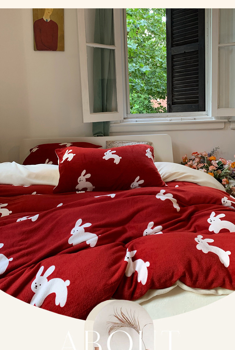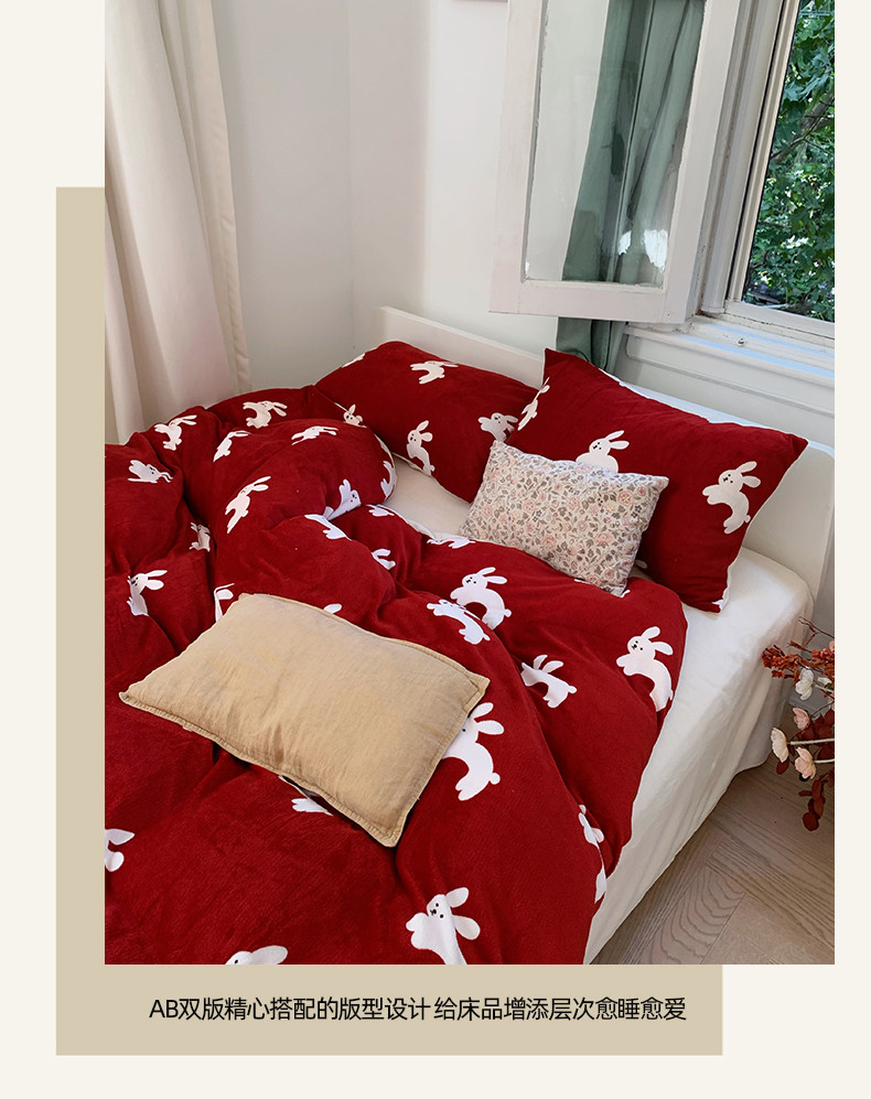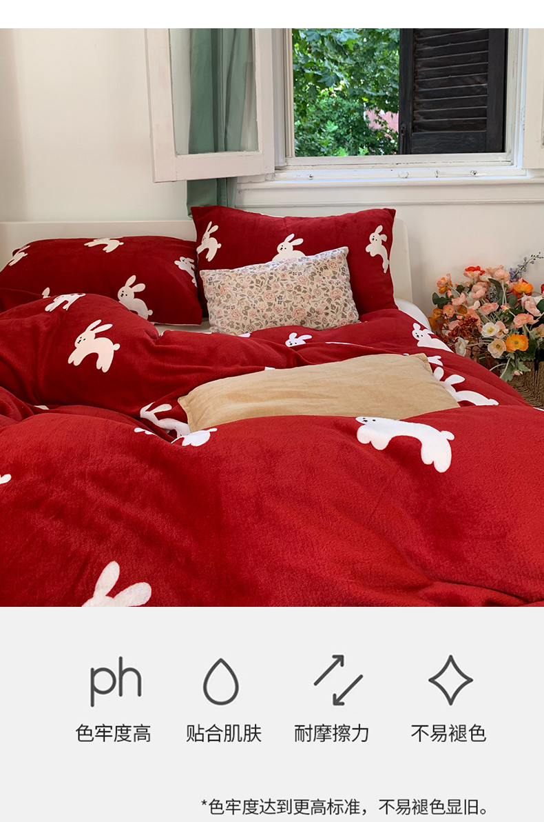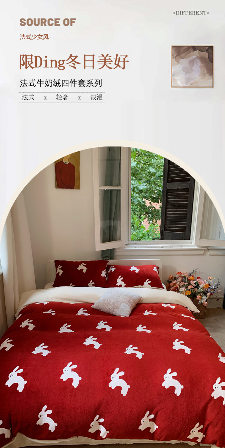 商品名称:花沐 2023新款冬季复古小法式牛奶绒四件套 红兔小姐