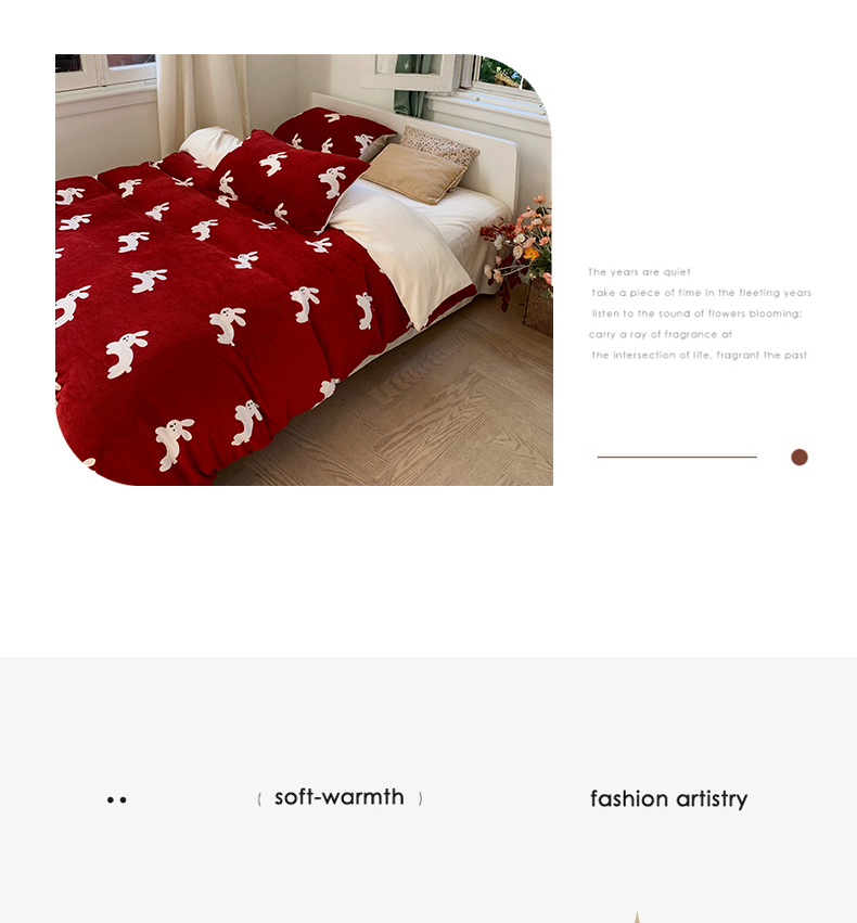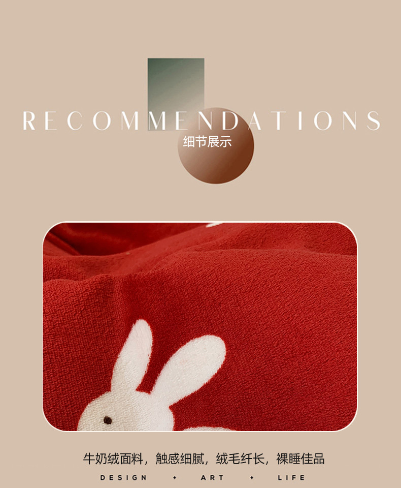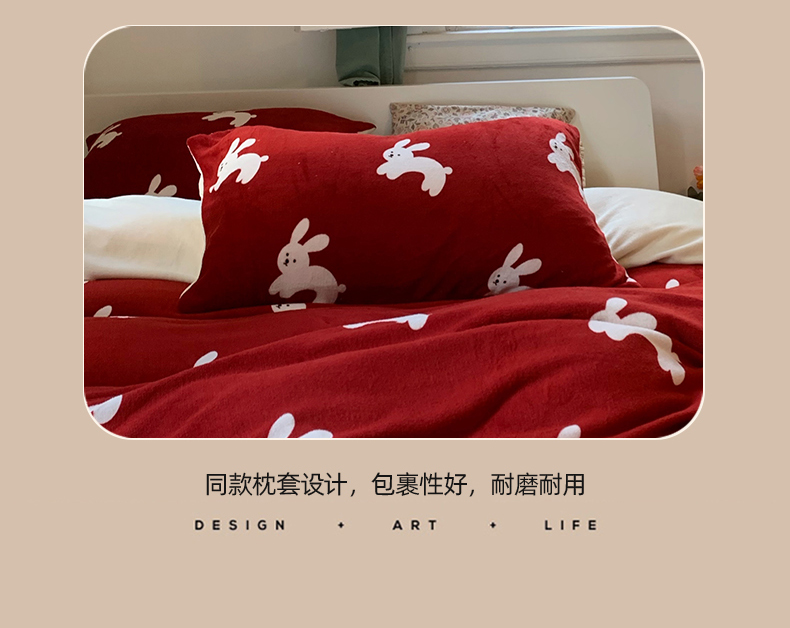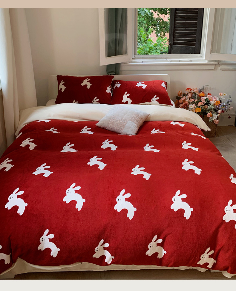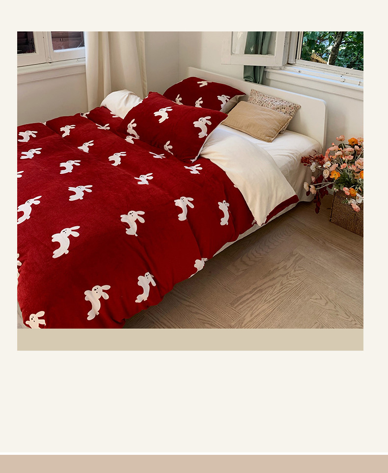 商品名称:花沐 2023新款冬季复古小法式牛奶绒四件套 红兔小姐