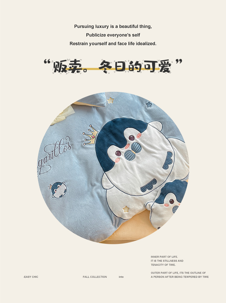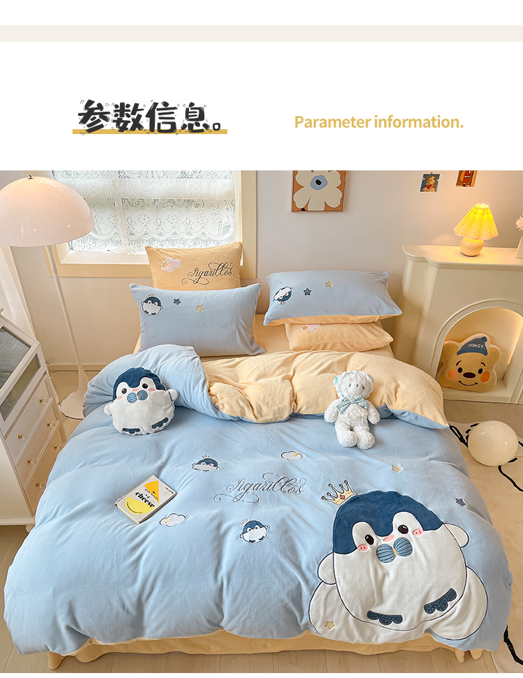 商品名称:绒梦里230克高克重加厚牛奶绒贴布绣花四件套冬季儿童卡通三件套保暖套件
