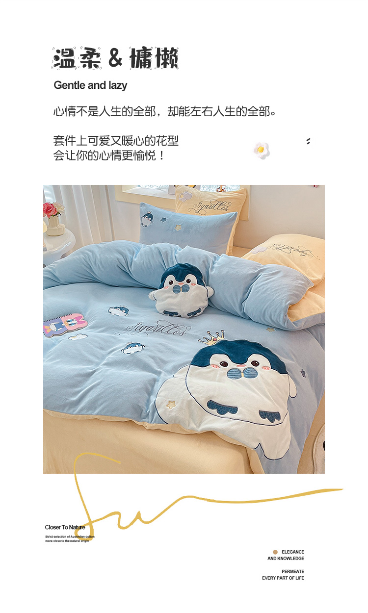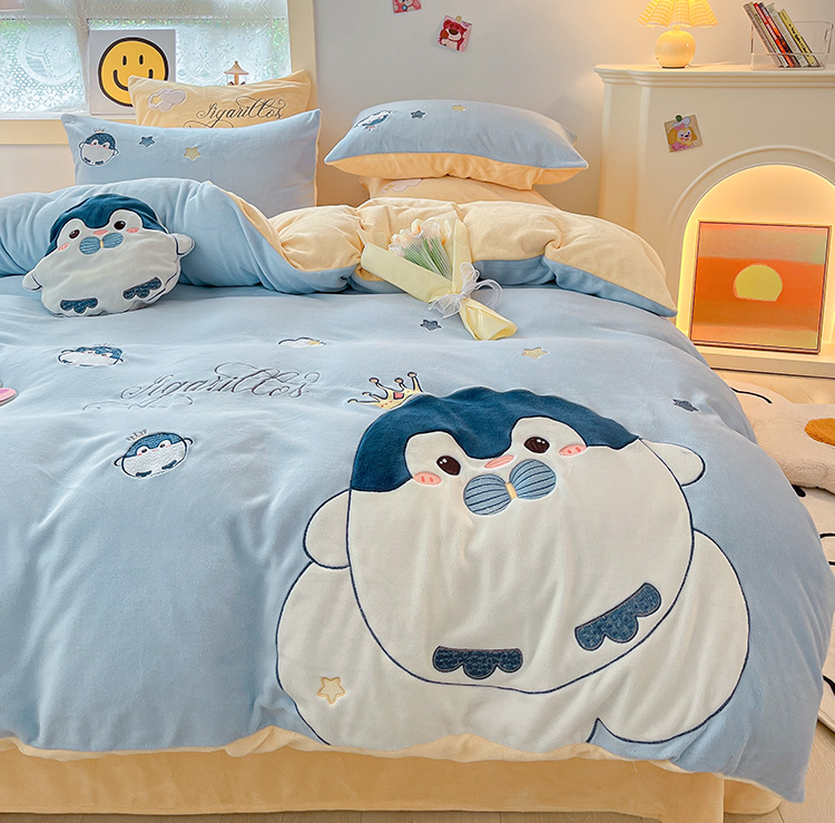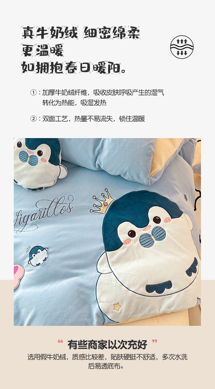 绒梦里230克高克重加厚牛奶绒贴布绣花四件套冬季儿童卡通三件套保暖套件