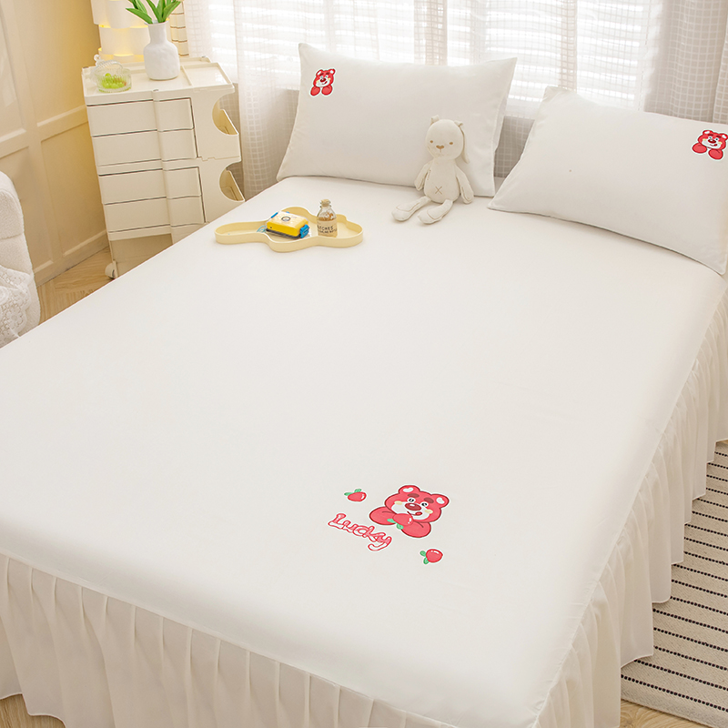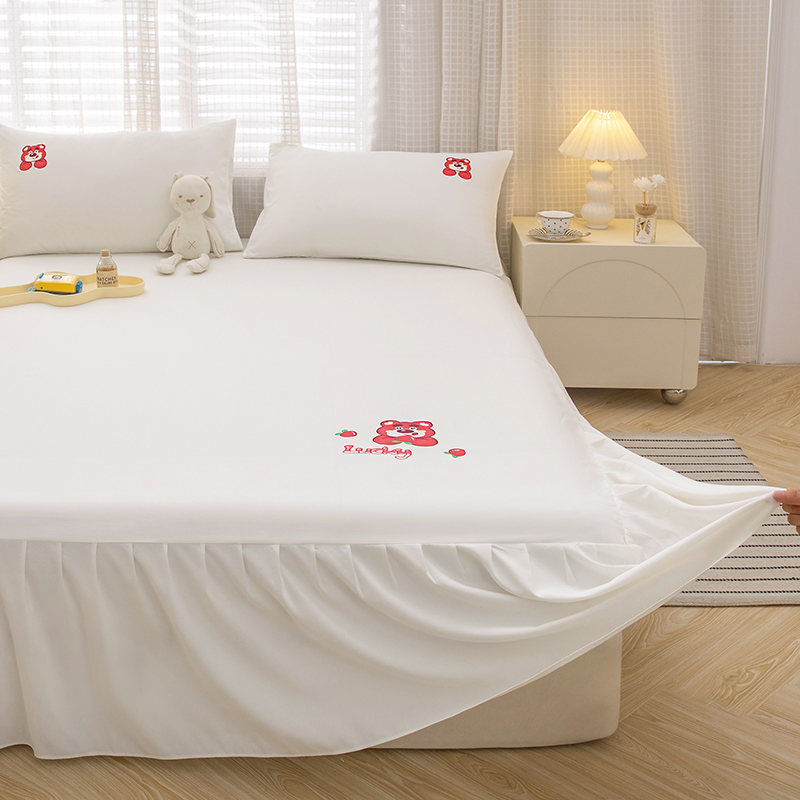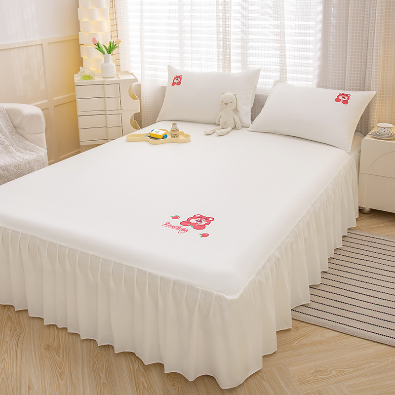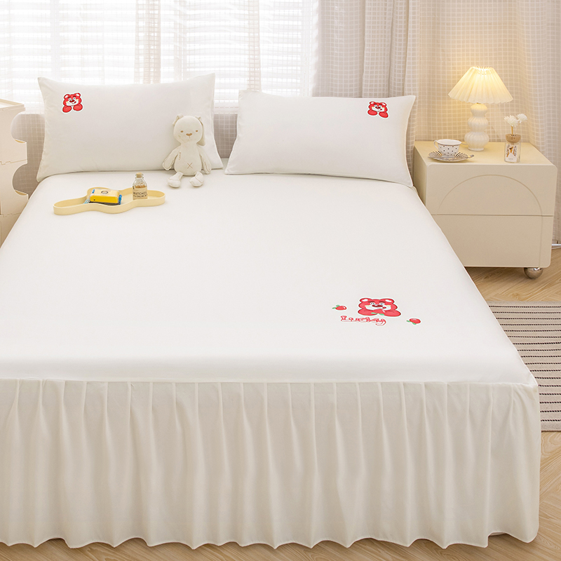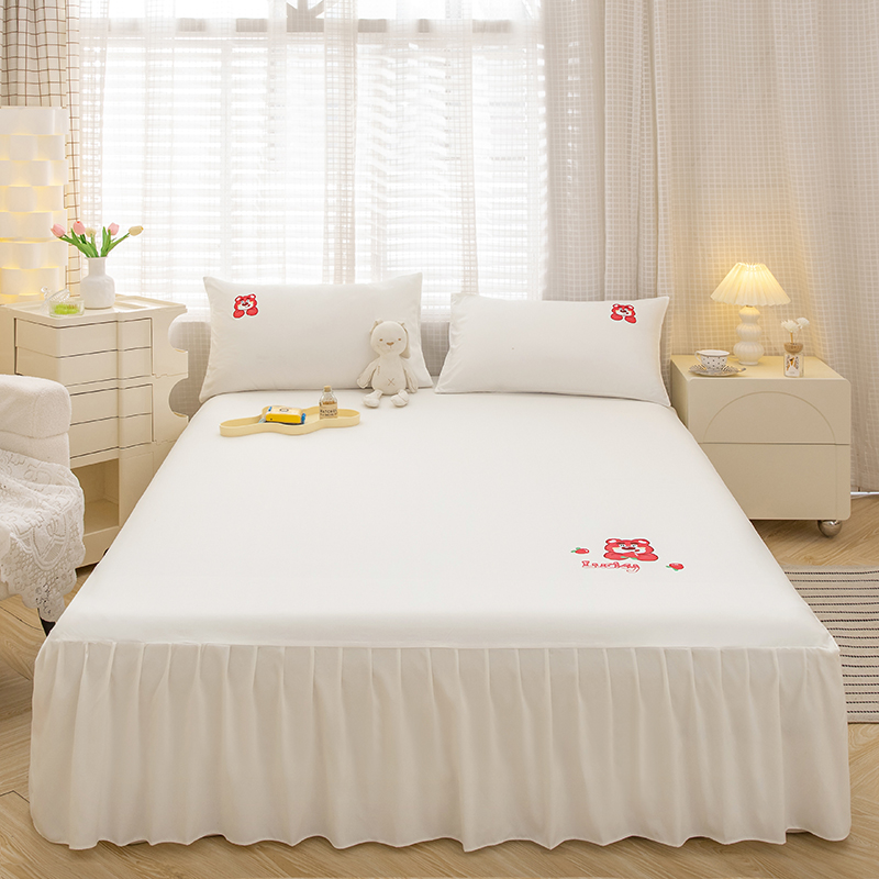 极梦家纺(支持定制) 2025新款韩版纯色卡通单床裙三件套素色 米白可爱熊