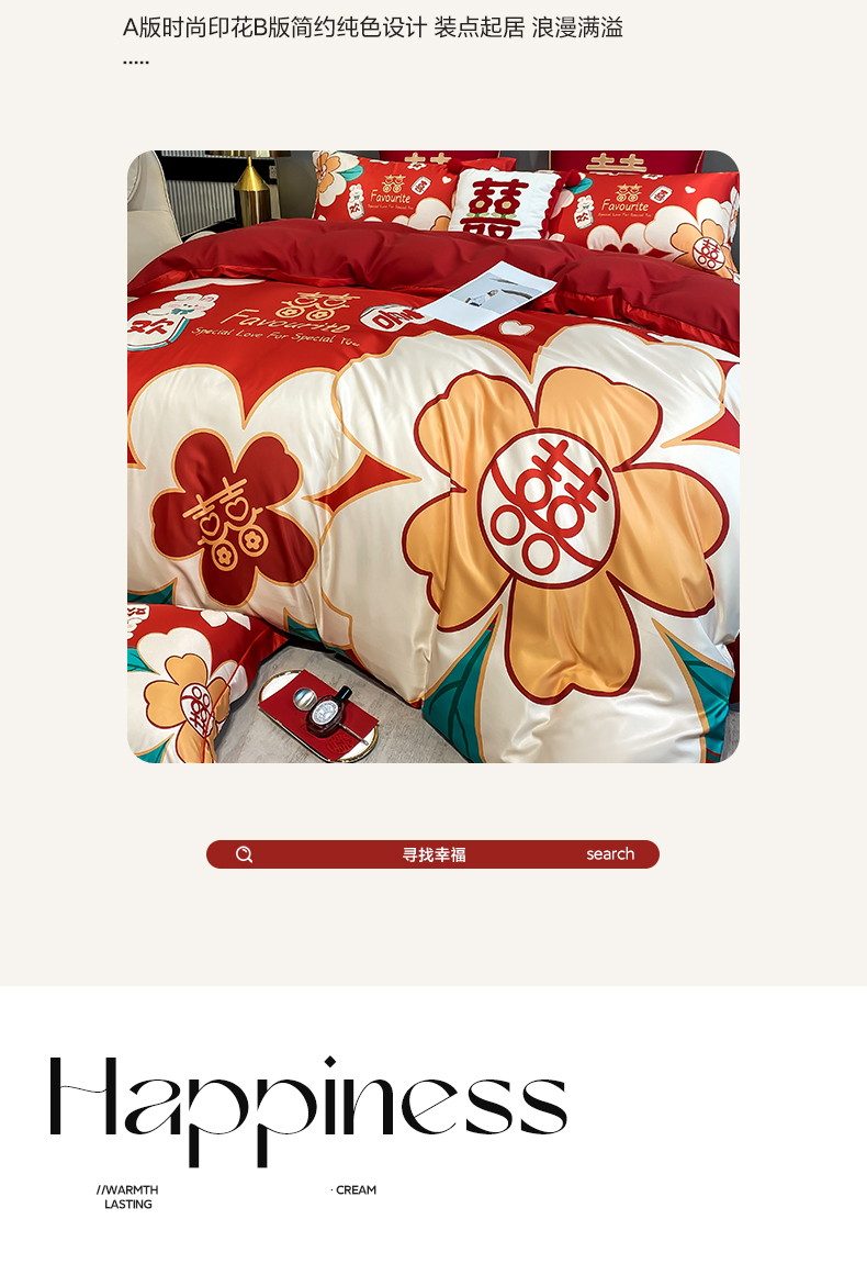 (总)花愿(原花纪) 2025新款水洗棉刺绣婚庆四件套系列,丹枫迎喜,欢喜,良缘,龙凤欢喜,玫瑰之恋,美满,如意,天禧,唯一,喜爱,心心相印,幸福,永恒之恋,钟爱一生