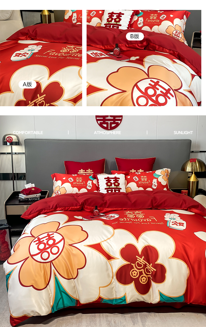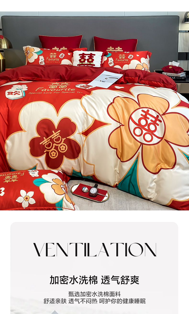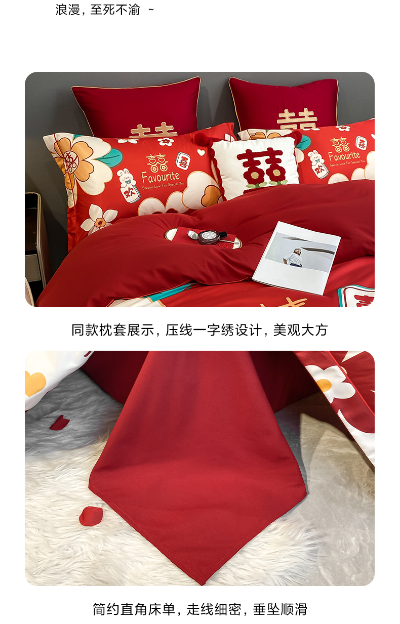 (总)花愿(原花纪) 水洗棉刺绣婚庆四件套,喜上加喜,禧悦,永结同心
