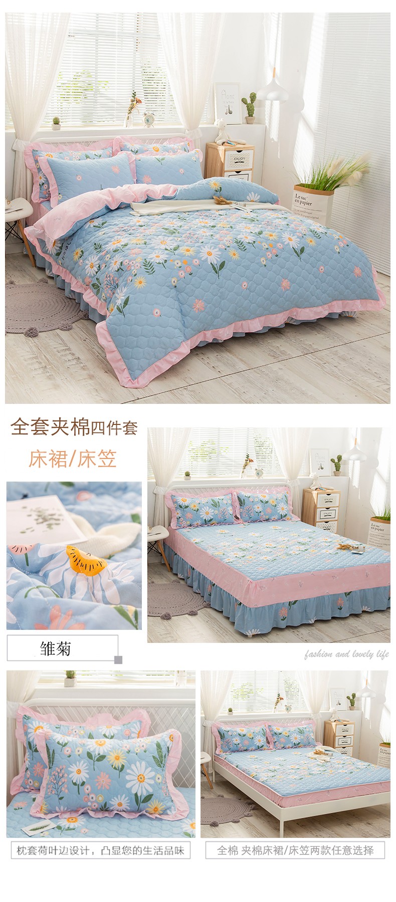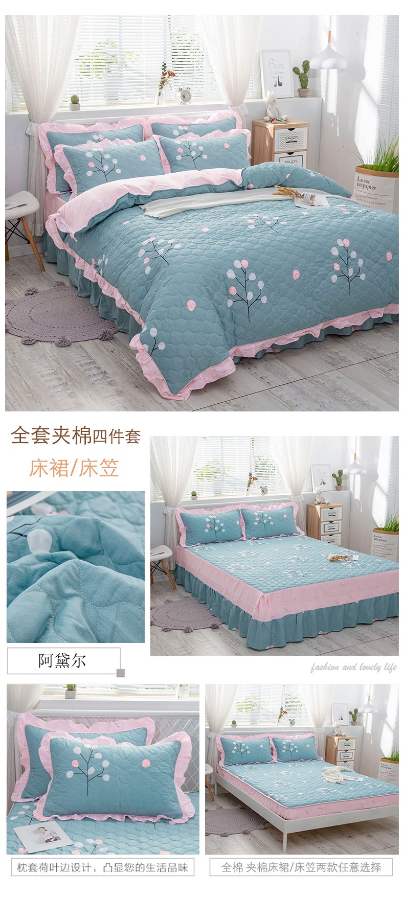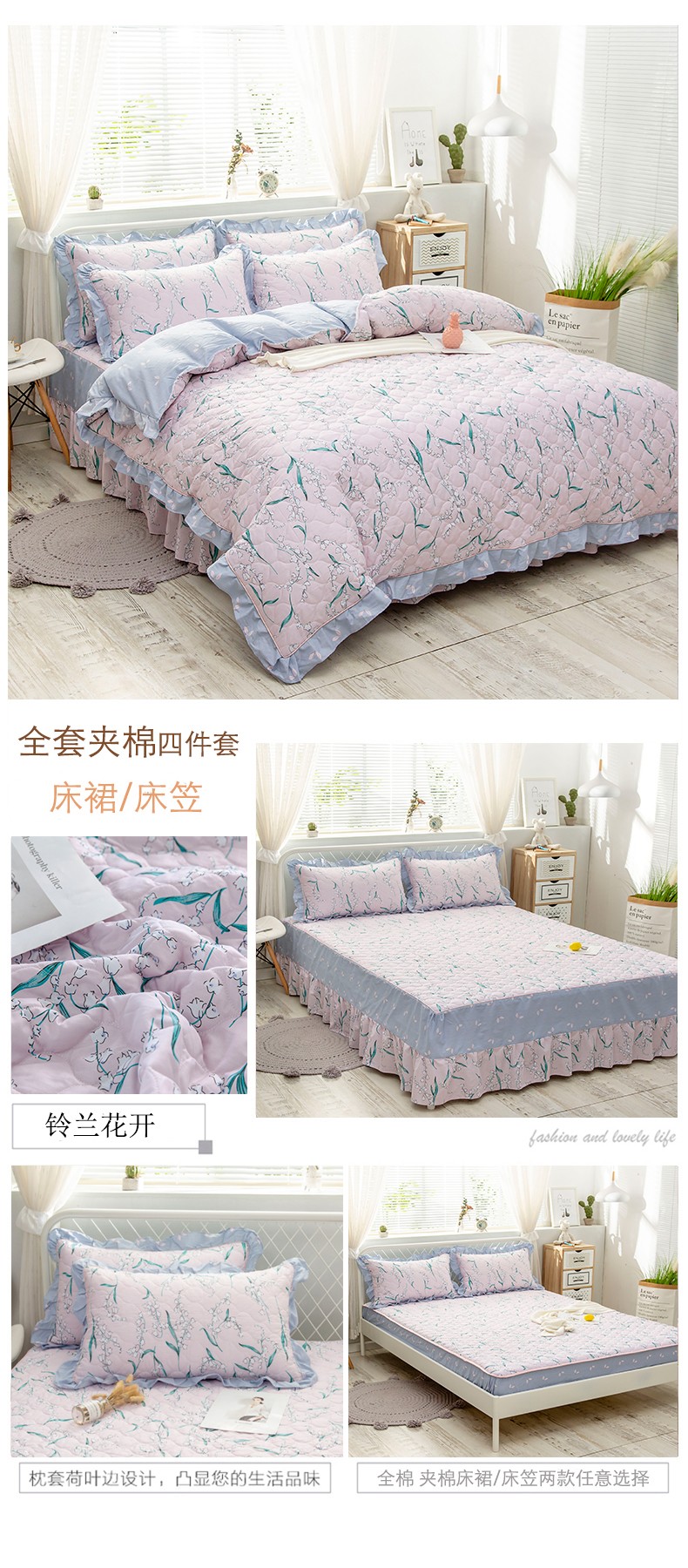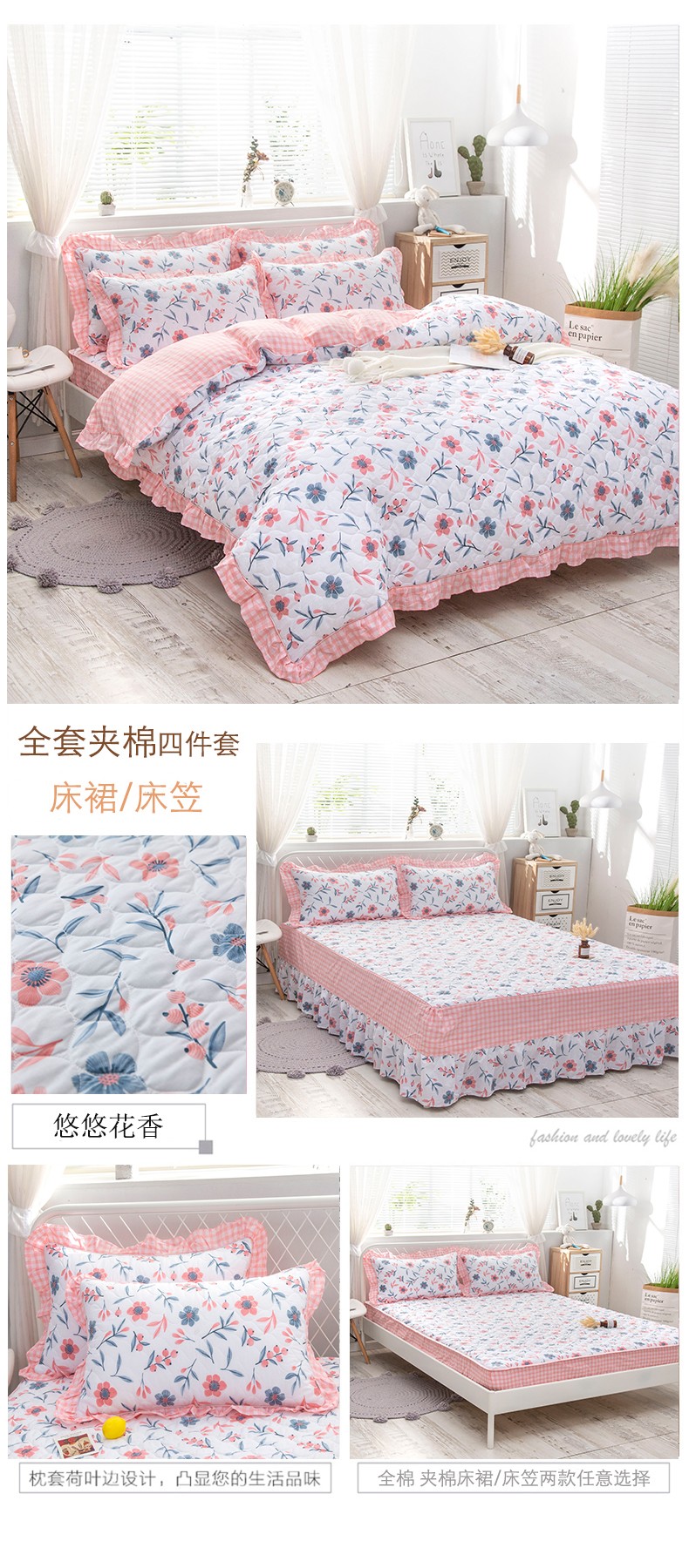 (总)2022新款40s全棉夹棉床裙四件套 (配双针被套),淡香伊人,恋情,罗兰粉,罗兰蓝,若水生花,夏花,向阳花开,小清新,新叶,叶之精灵,伊甸花海,柚子,冰兔,桃花粉,紫丁香