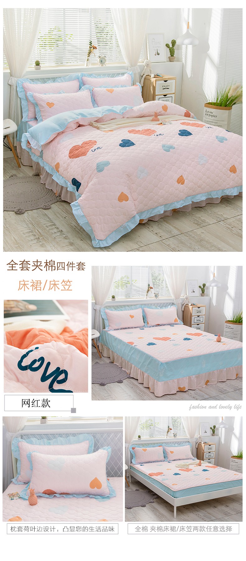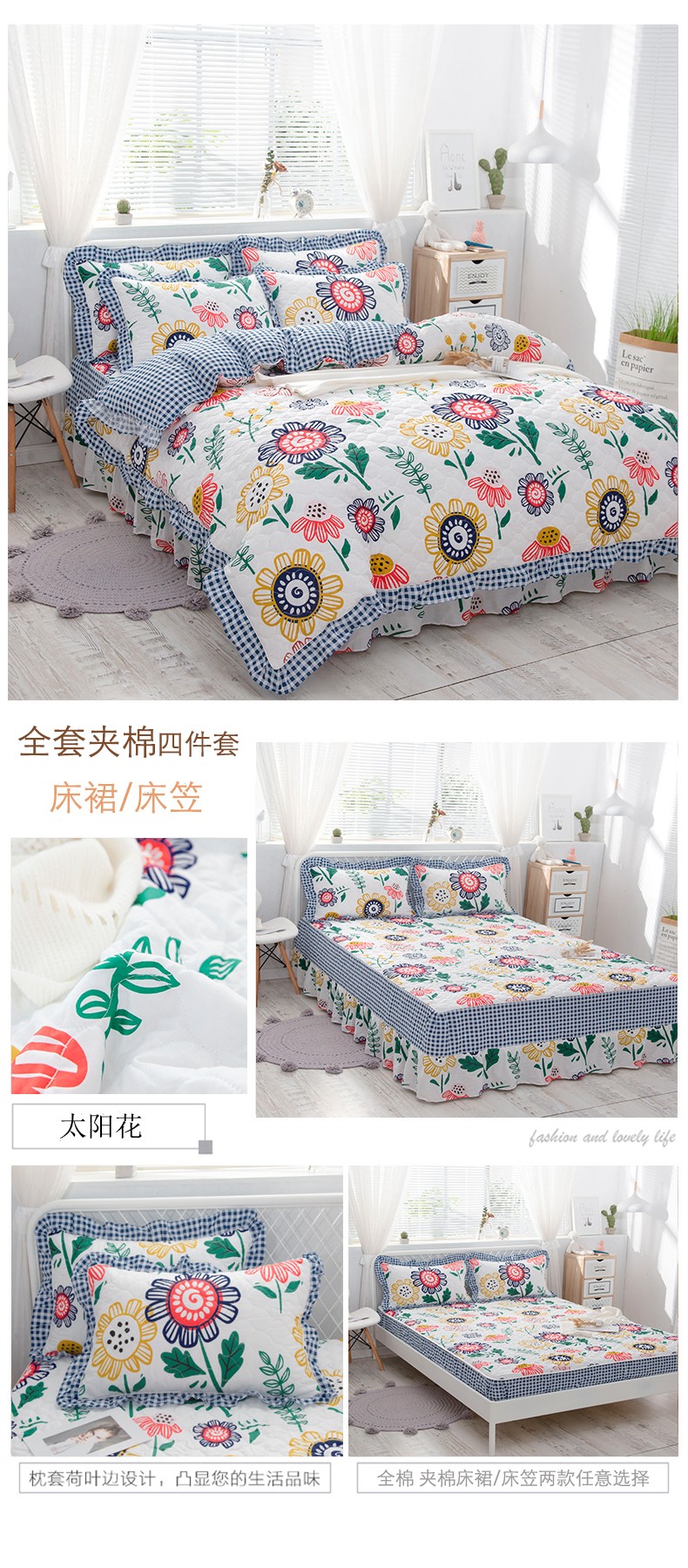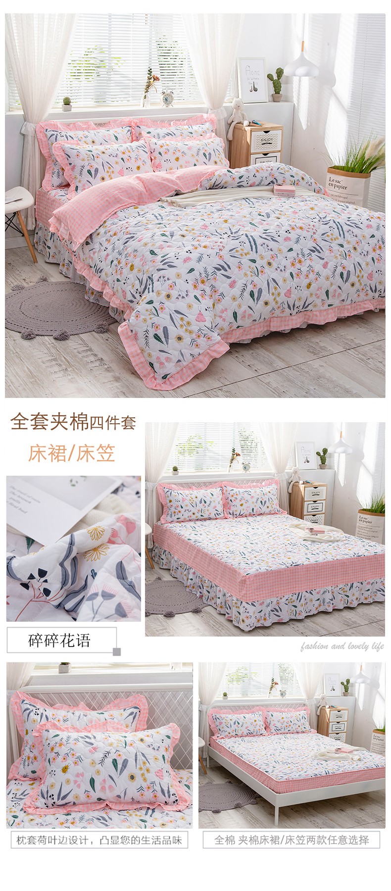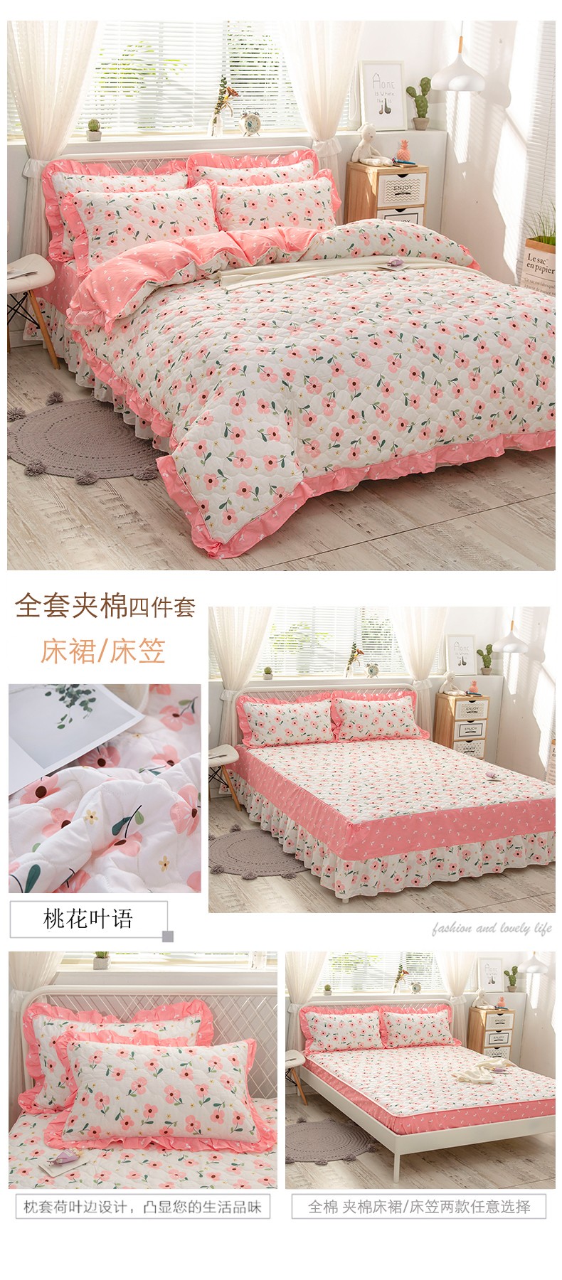 (总)2022新款40s全棉夹棉床裙四件套 (配双针被套),淡香伊人,恋情,罗兰粉,罗兰蓝,若水生花,夏花,向阳花开,小清新,新叶,叶之精灵,伊甸花海,柚子,冰兔,桃花粉,紫丁香