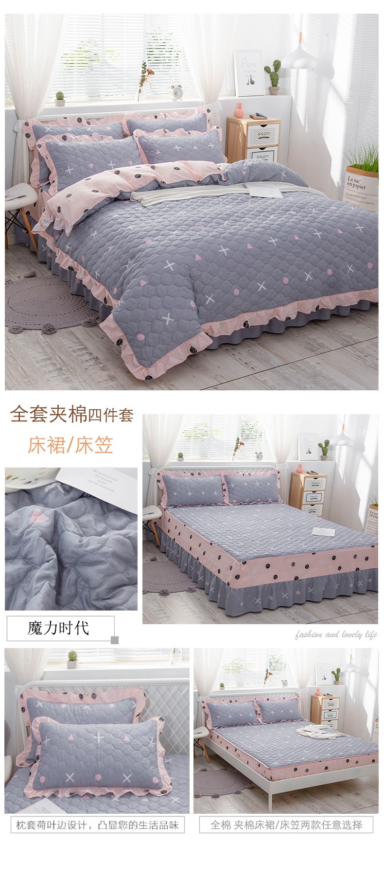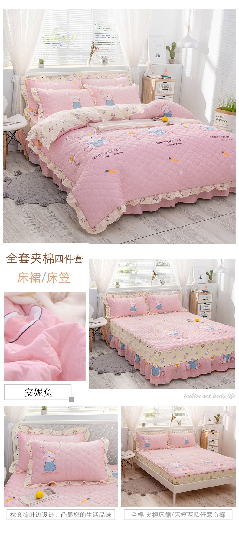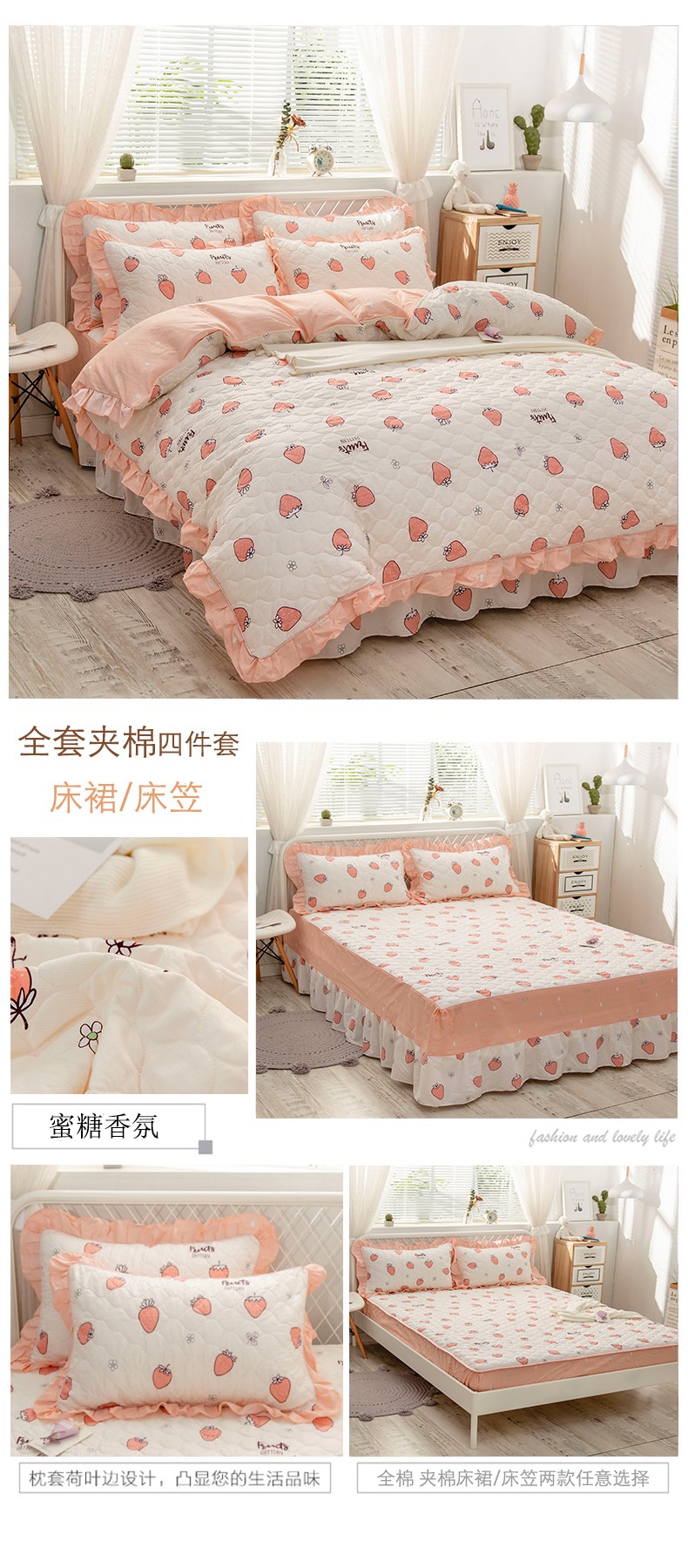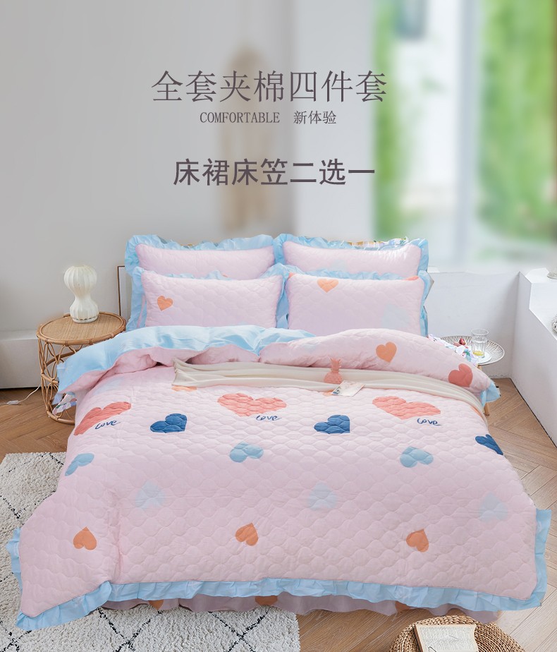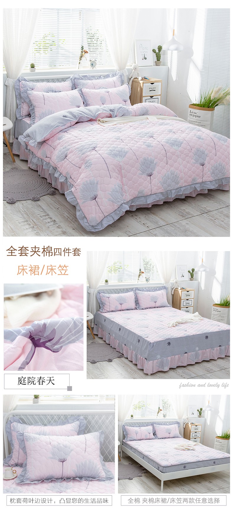 (总)2022新款40s全棉夹棉床裙四件套 (配双针被套),淡香伊人,恋情,罗兰粉,罗兰蓝,若水生花,夏花,向阳花开,小清新,新叶,叶之精灵,伊甸花海,柚子,冰兔,桃花粉,紫丁香