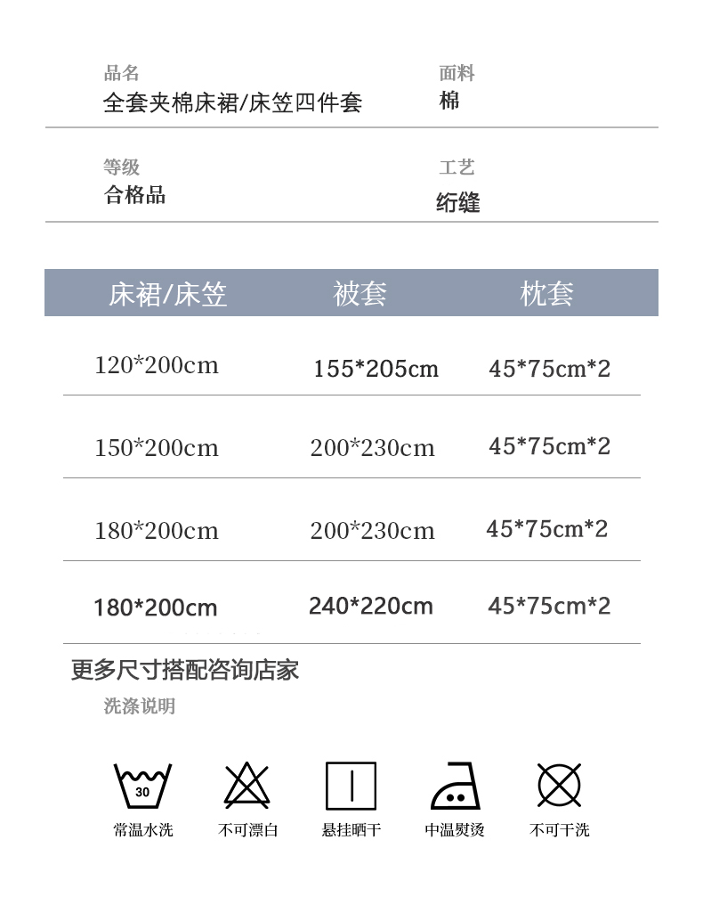 1.8*2.0m夹棉床罩四件套(被套2.2x2.4m)