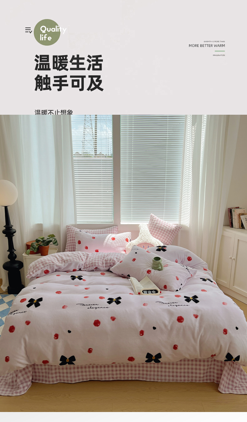 当前位置: 91家纺网 > 商品网购 > 床品套件 > 四件套 > 牛奶绒四件套 > 三朵家纺 2023年牛奶绒小清新系列四件套 青春气息