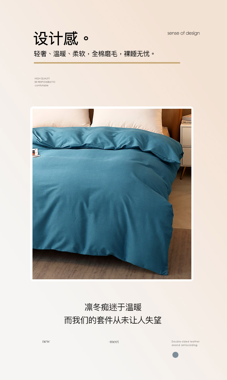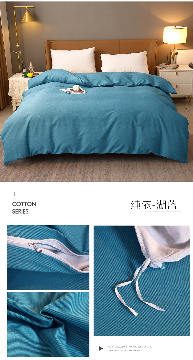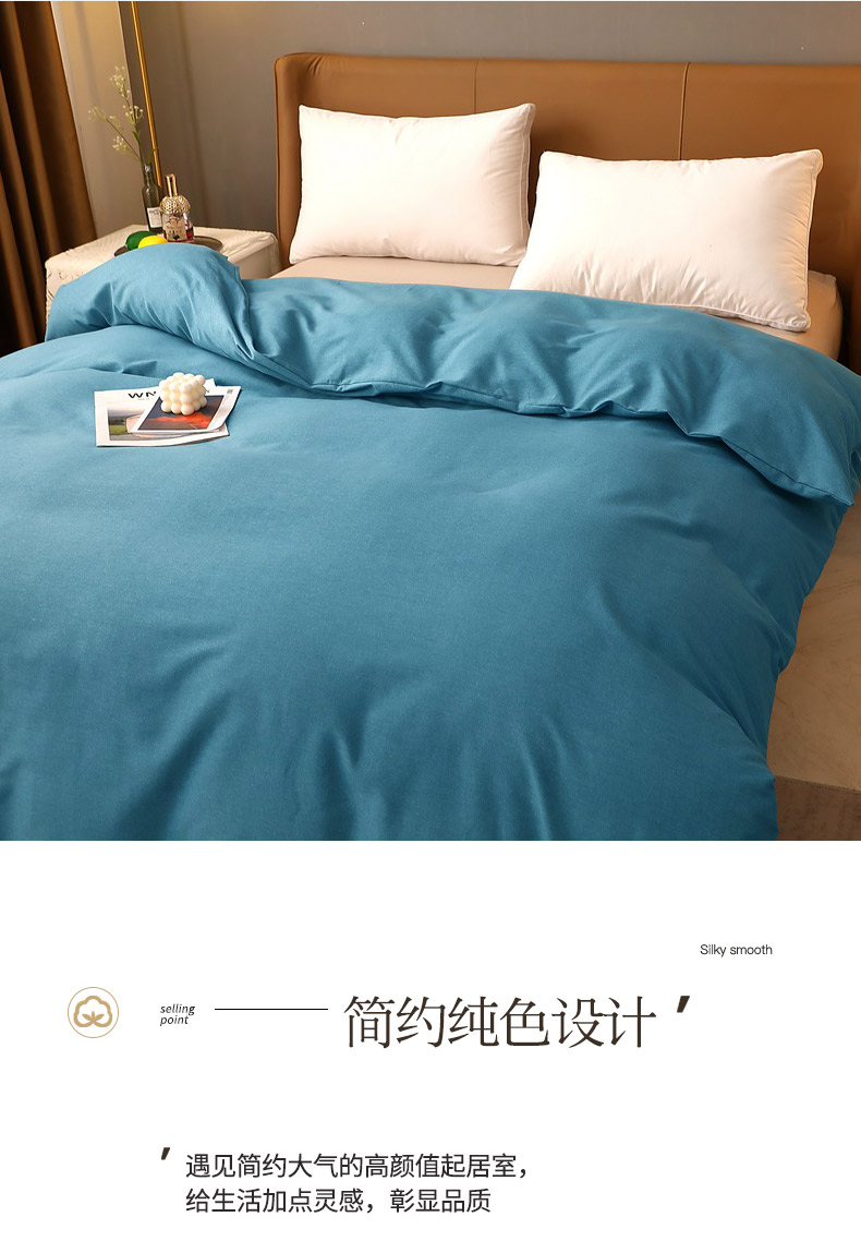 晶缦家纺 2023加厚全棉纯色生态磨毛多规格单品四件套--被套 纯依-湖蓝