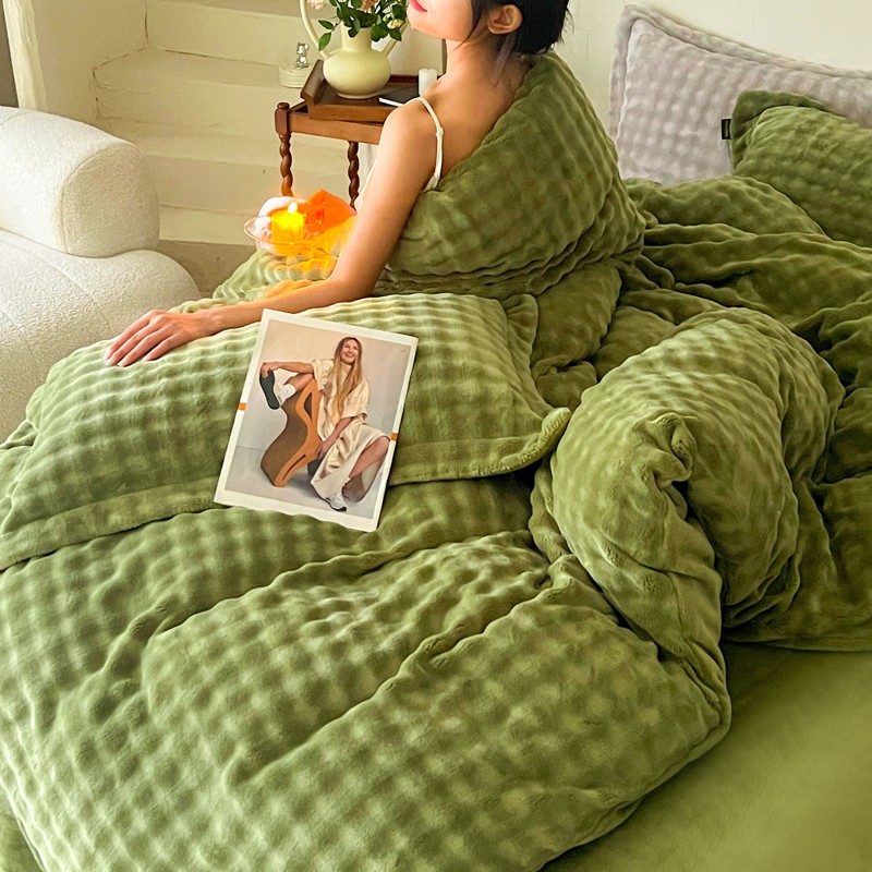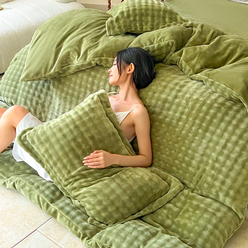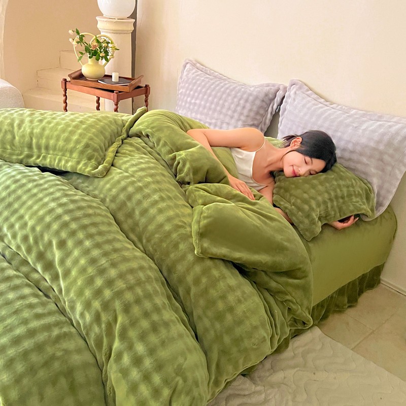佳居缘 2023新款A类兔兔绒四件套柔软亲肤绒轻奢套件 果绿