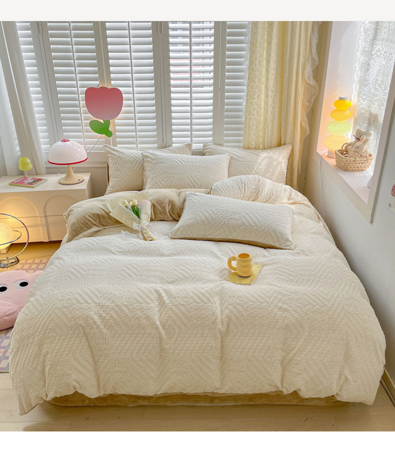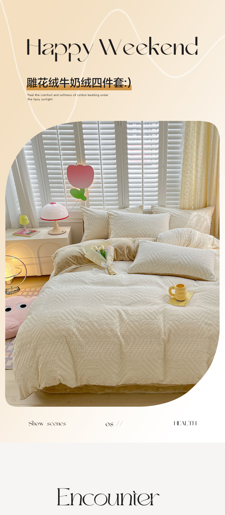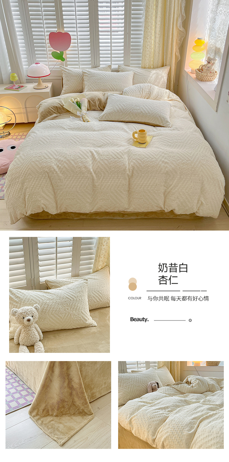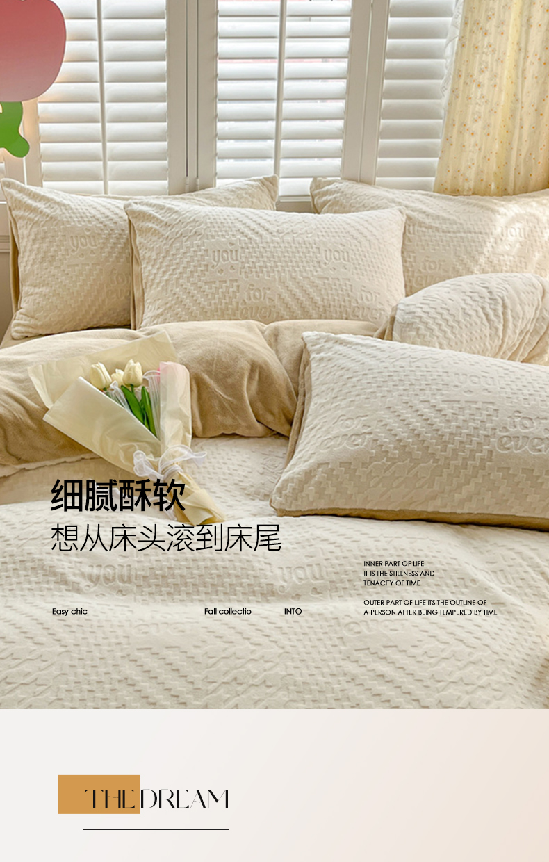 当前位置: 91家纺网 > 商品网购 > 床品套件 > 四件套 > 雕花绒四件套 > 古吉梦 2023新款雕花绒四件套-简爱 奶昔白+杏仁