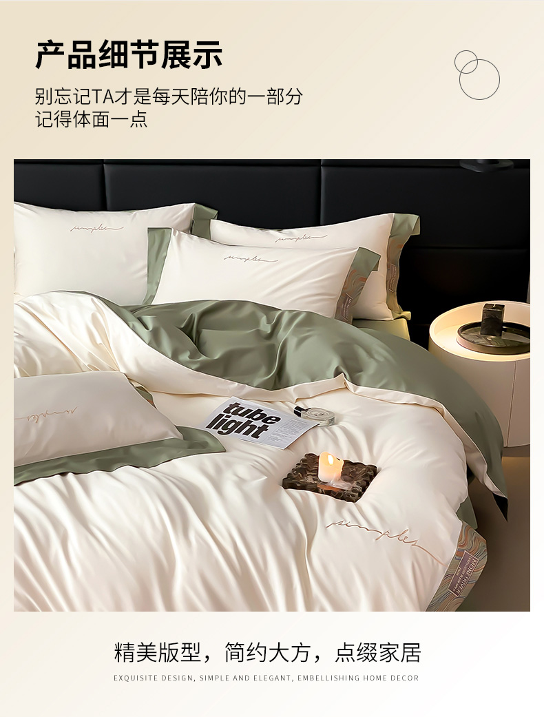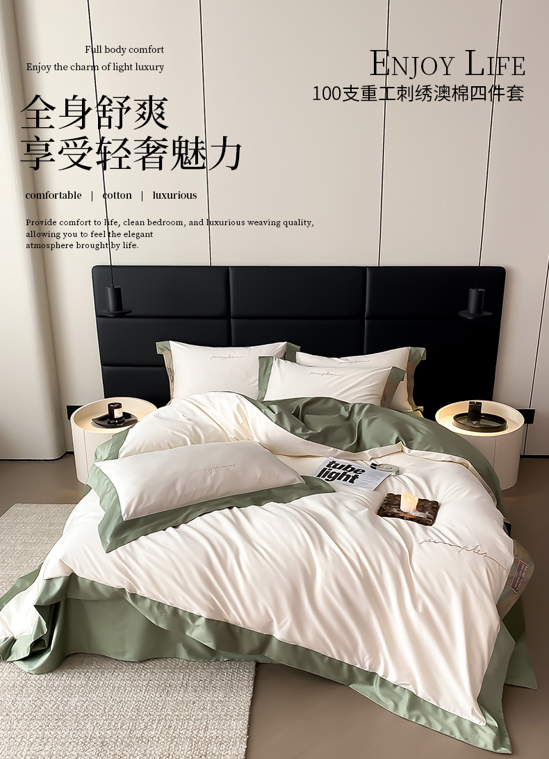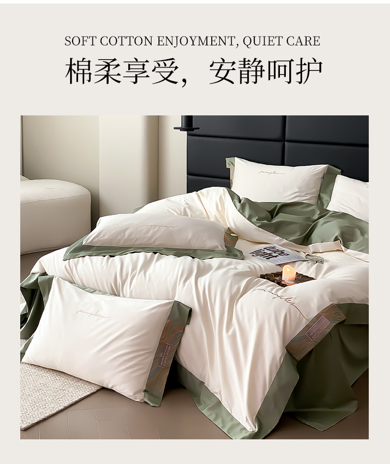 爱缦 2023新款极光系列100支澳棉四件套风格一 茶香绿