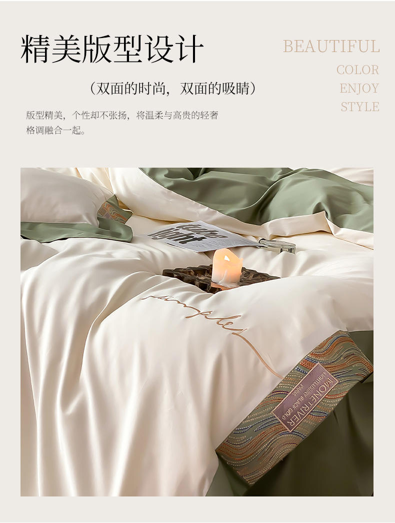 (总)爱缦 新款60支莱赛尔四件套-至真系列,蓝米驼,米白粉,浅紫,玉粉