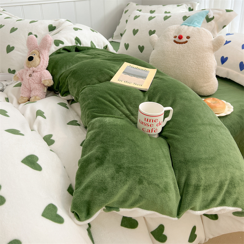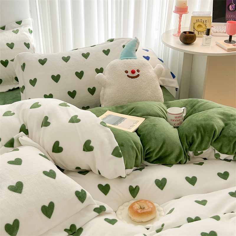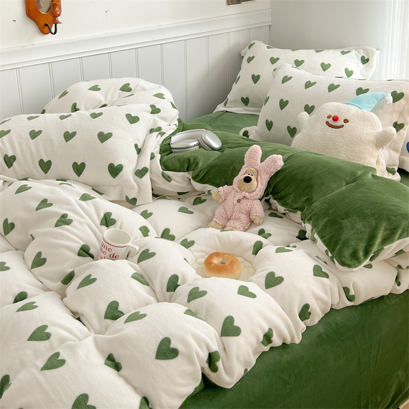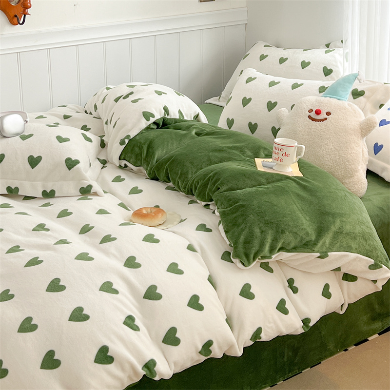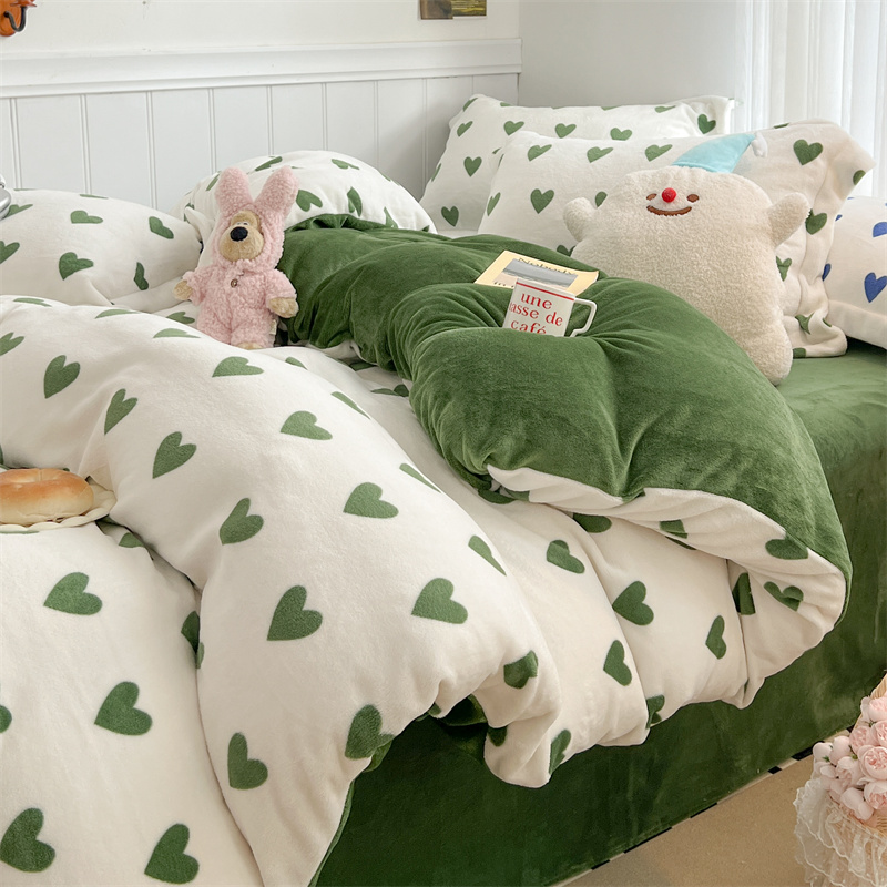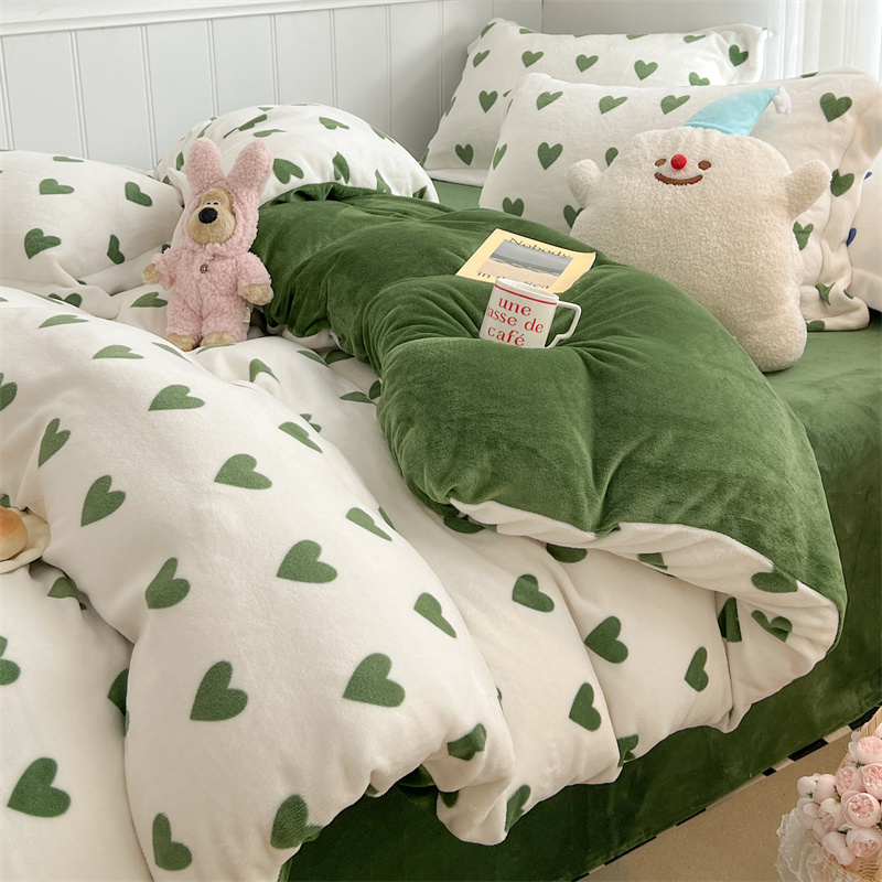 商品名称:顾里家纺 新款ins少女保暖牛奶绒四件套第二批 绿心