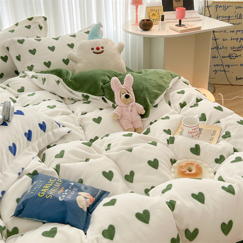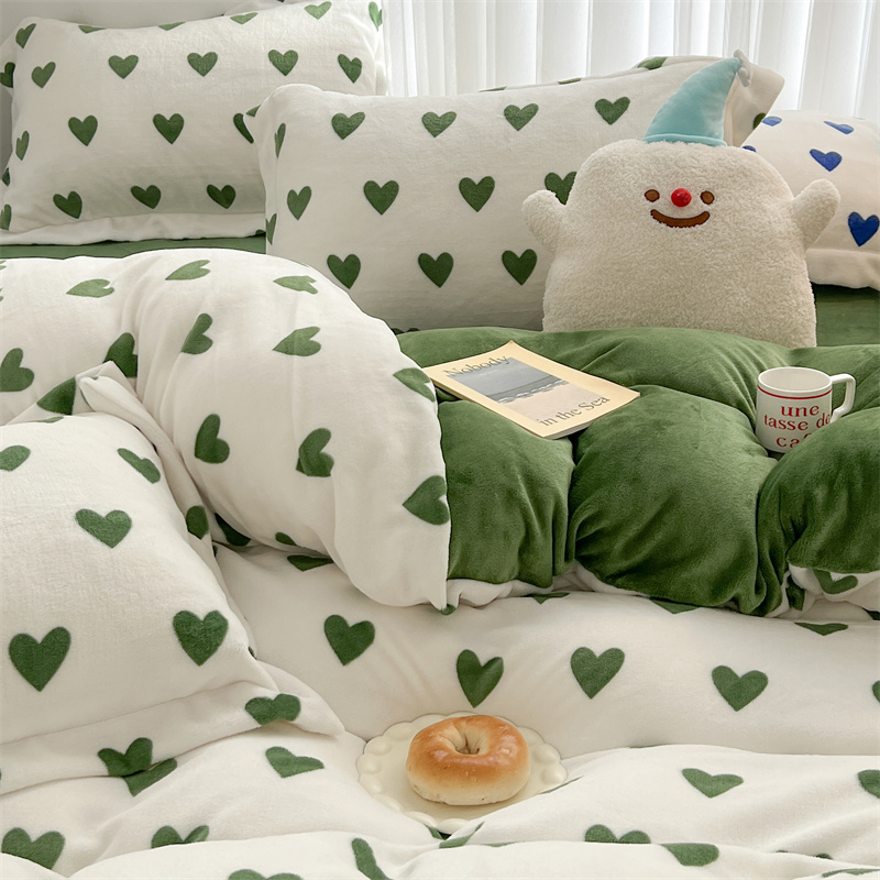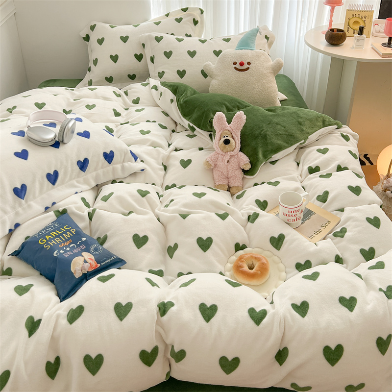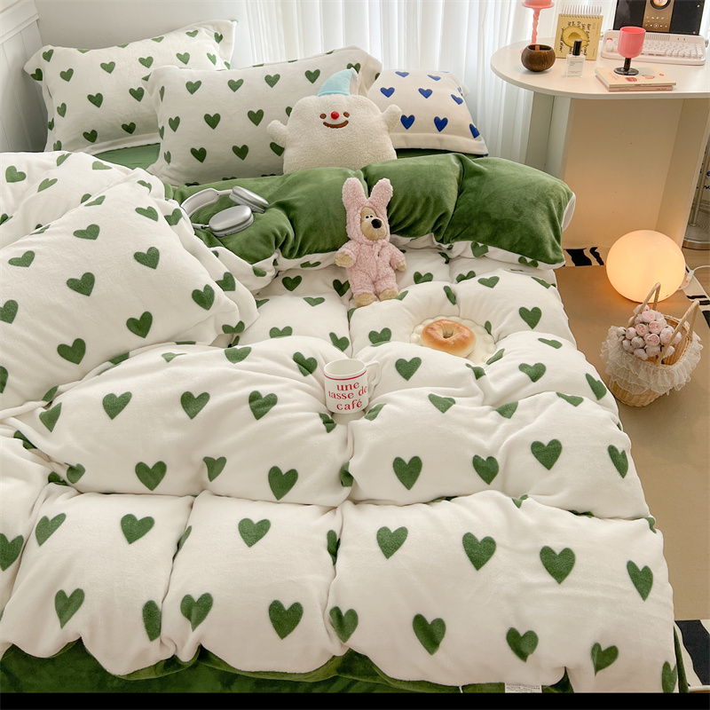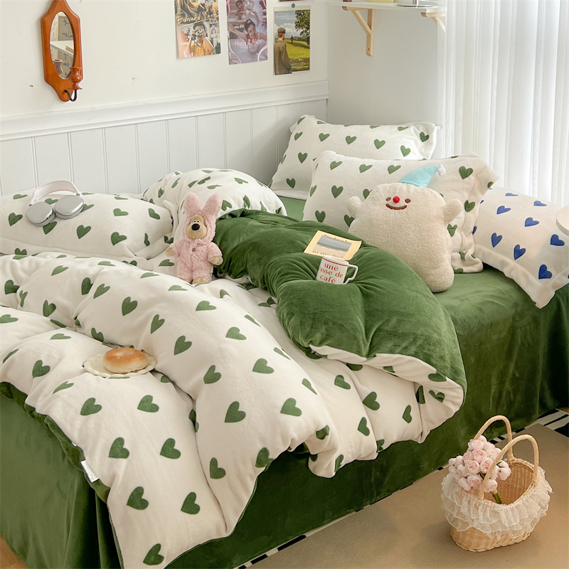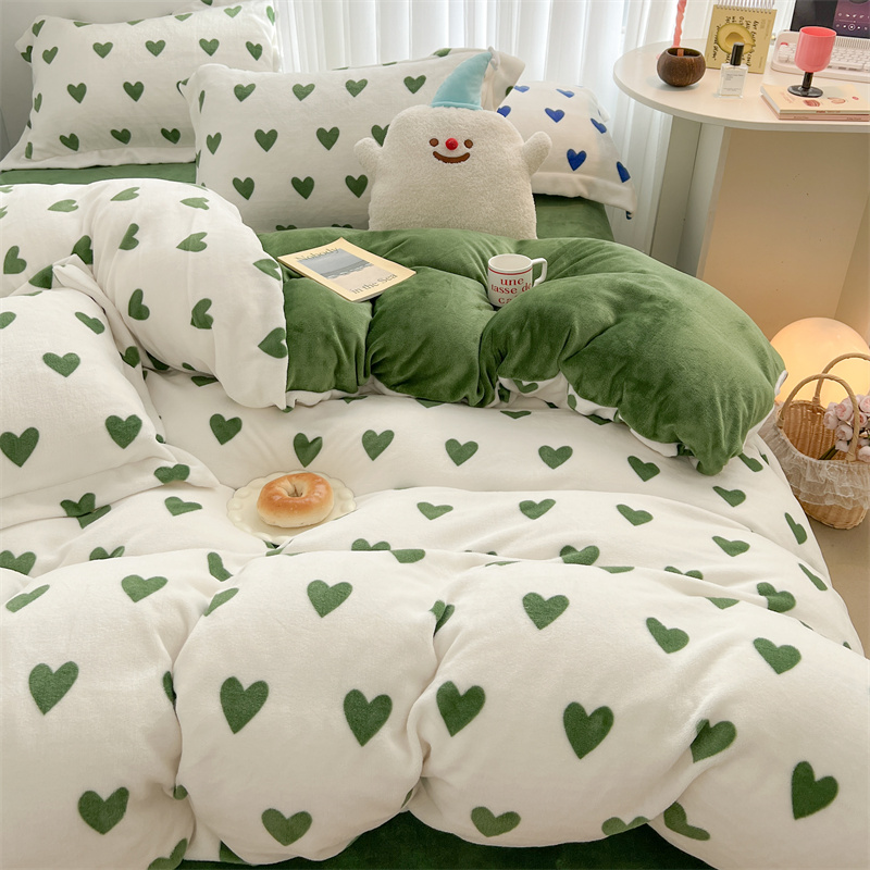 商品名称:顾里家纺 新款ins少女保暖牛奶绒四件套第二批 绿心