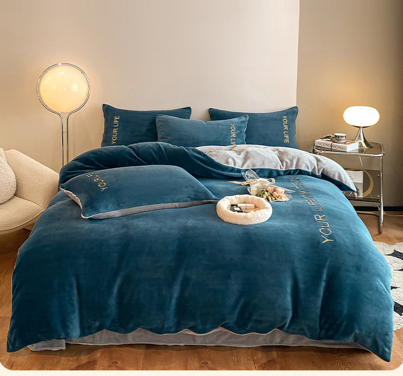 义博 2025新款牛奶绒刺绣四件套-浪漫系列 浪漫-宝石蓝