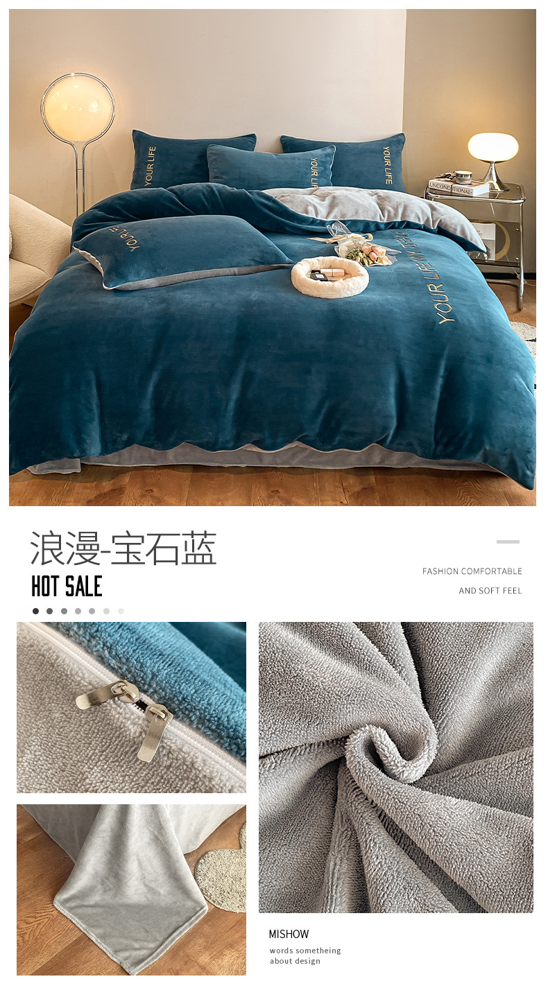 商品名称:义博 2025新款牛奶绒刺绣四件套-浪漫系列 浪漫-宝石蓝