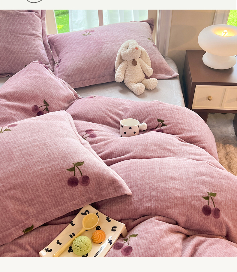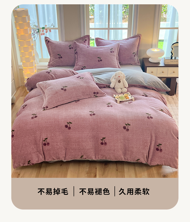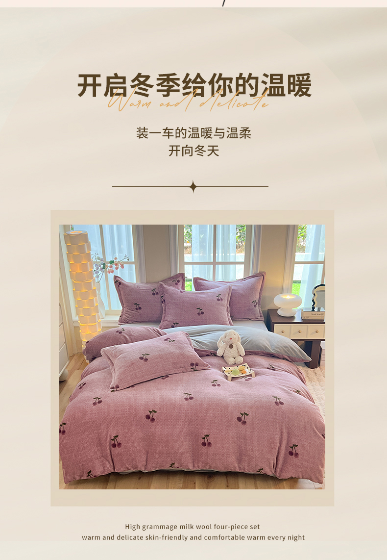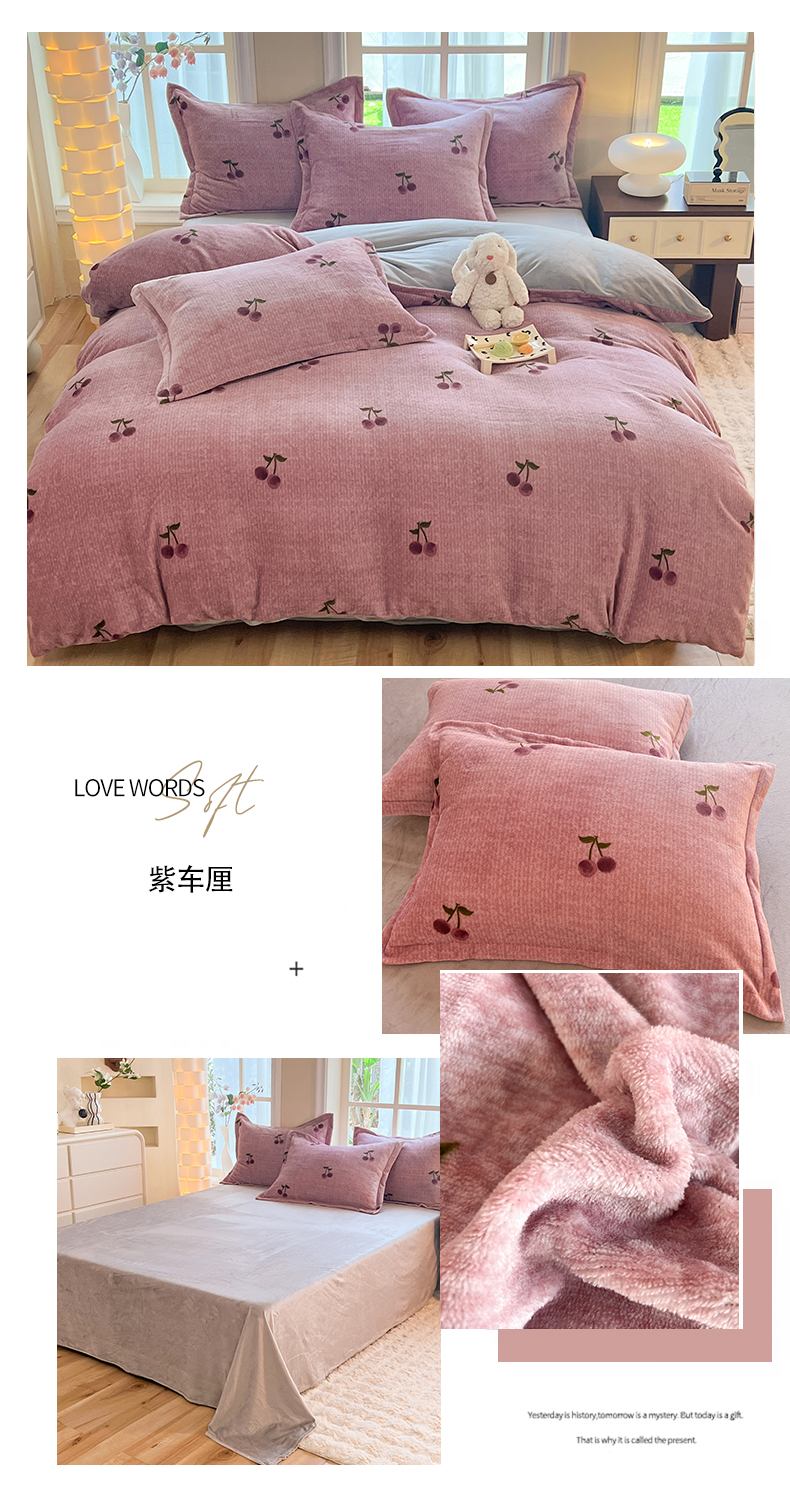 当前位置: 91家纺网 > 商品网购 > 床品套件 > 四件套 > 牛奶绒四件套 > 妖妖家纺 2023新款牛奶绒四件套 紫车厘