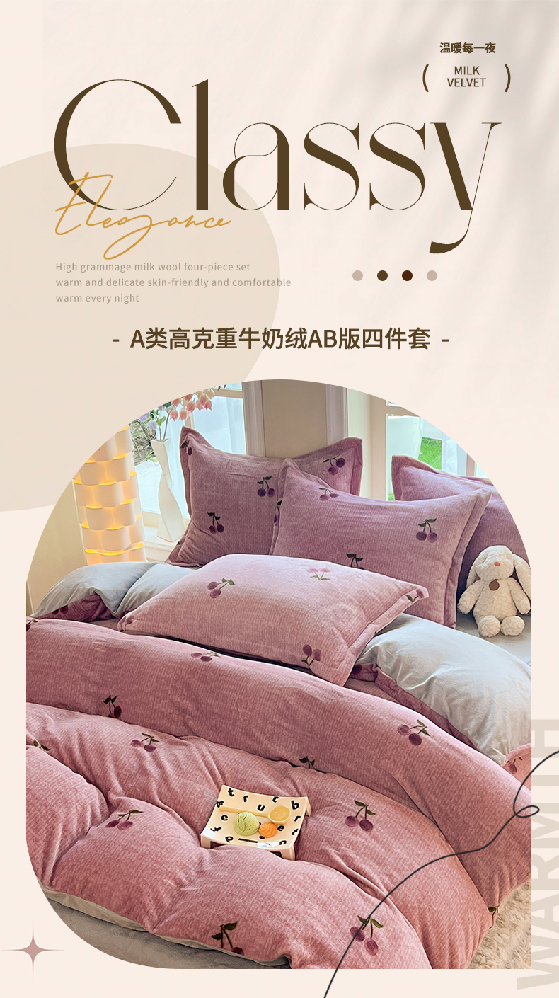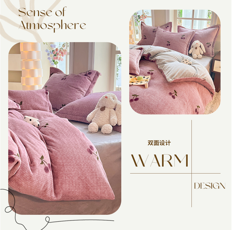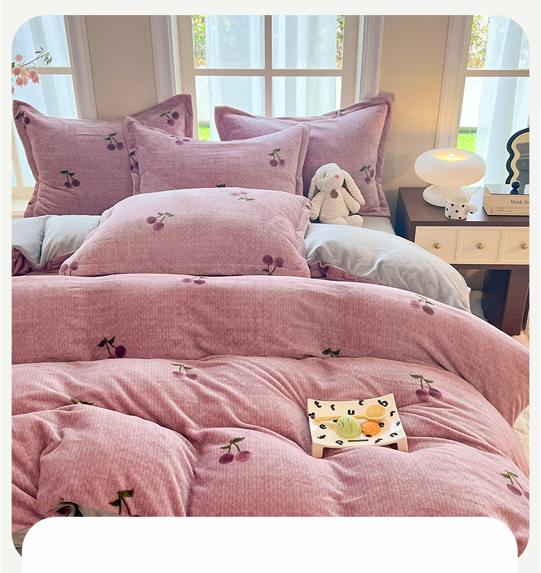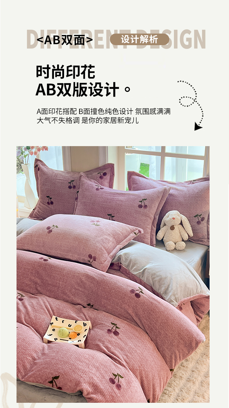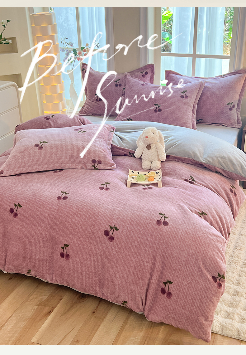 当前位置: 91家纺网 > 商品网购 > 床品套件 > 四件套 > 牛奶绒四件套 > 妖妖家纺 2023新款牛奶绒四件套 紫车厘