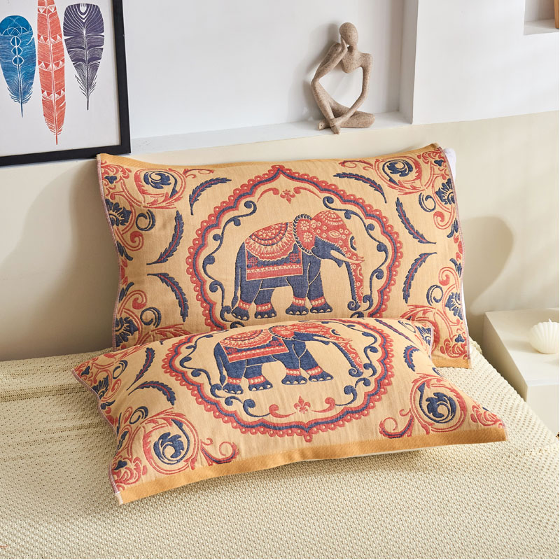 朴尔 2023年民族风彩棉系列四层纱布枕巾 印象派黄