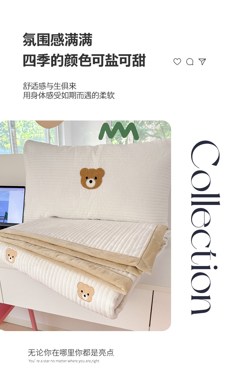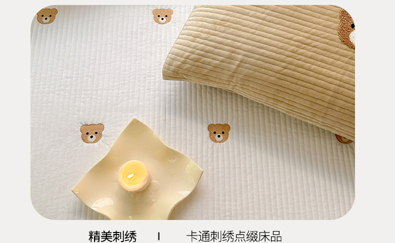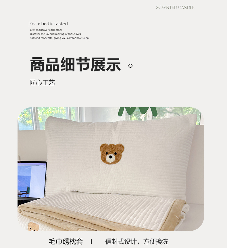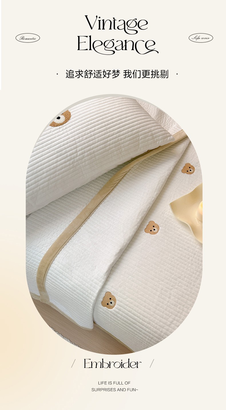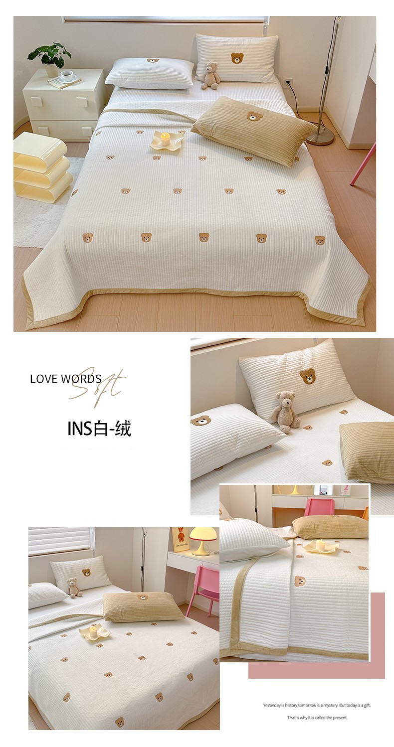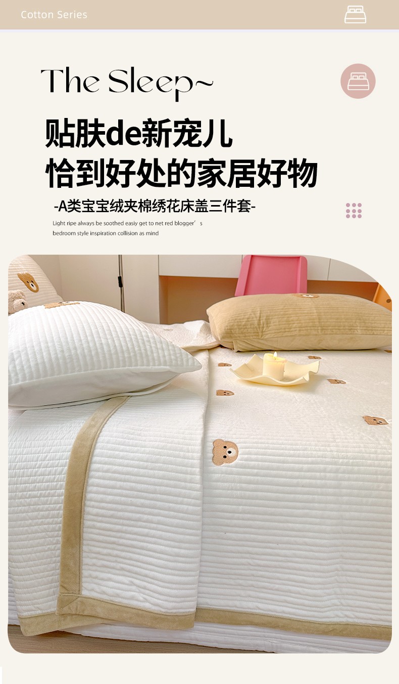 漫调家纺 2023新款ins风小熊刺绣宝宝绒款床盖三件套 ins白