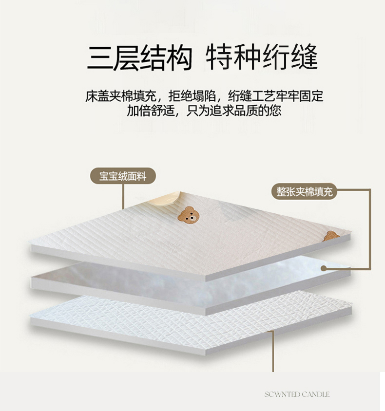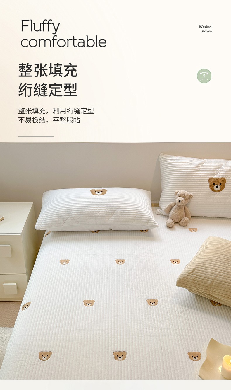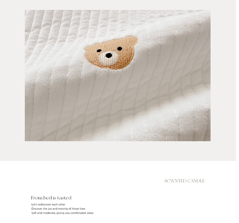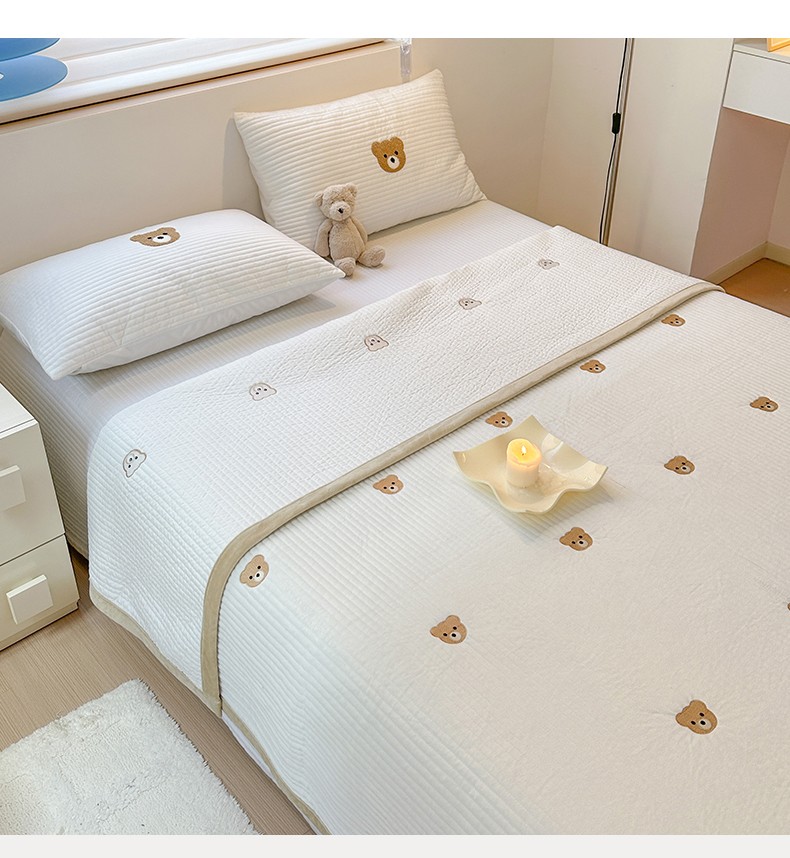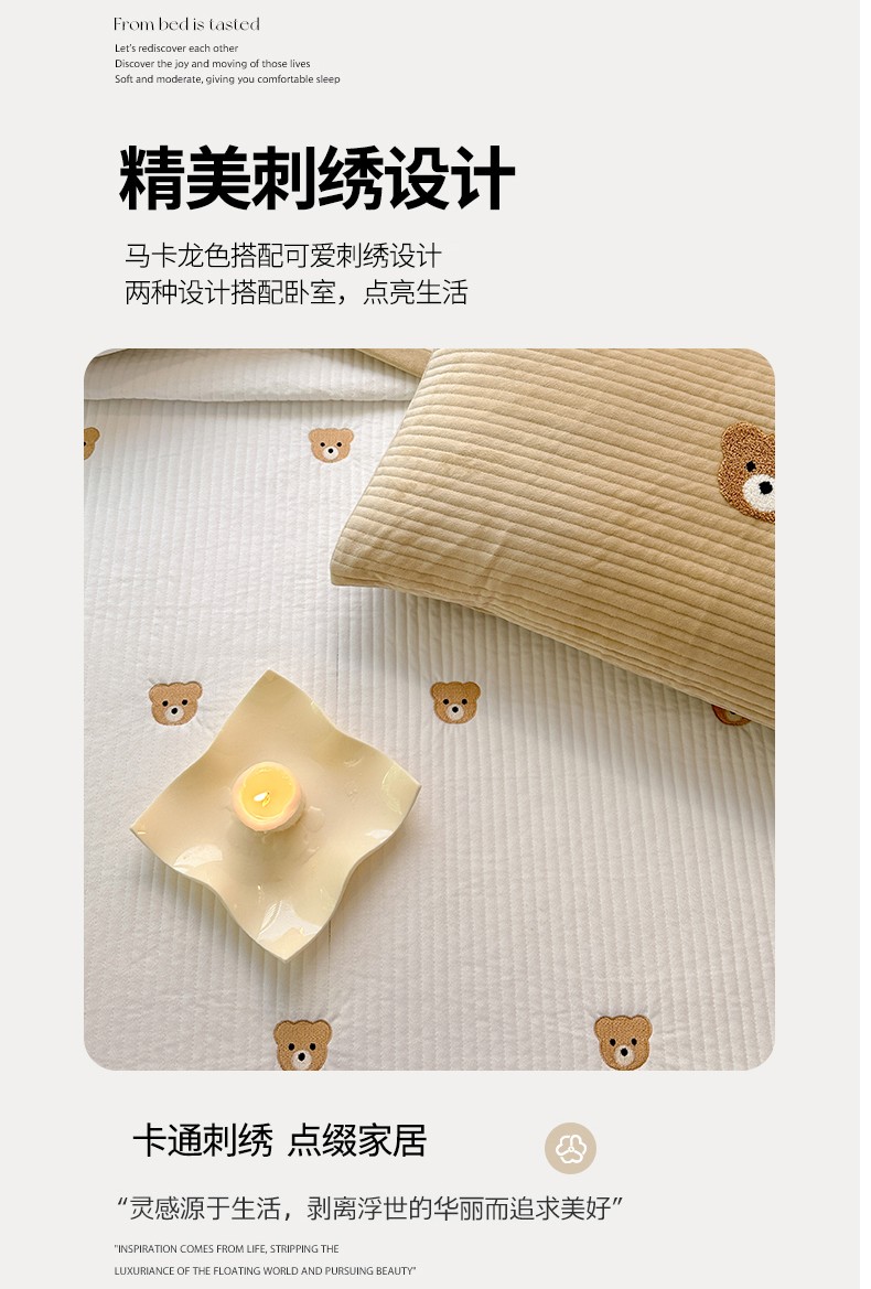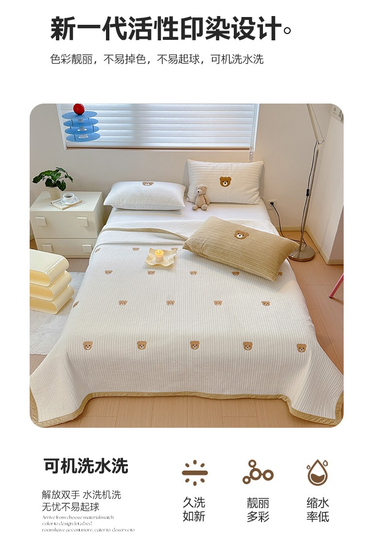 漫调家纺 2023新款ins风小熊刺绣宝宝绒款床盖三件套 ins白